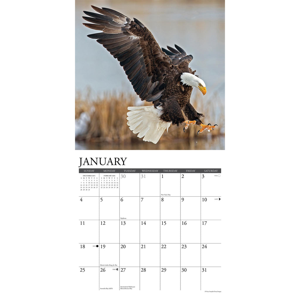 L'aigle à tête blanche plane au-dessus de l'Amérique du Nord, de l'Alaska au Canada et au nord du Mexique. Douze superbes photographies en couleurs capturent ces rapaces dans toute leur majesté. Organisez-vous pour l'année à venir avec le calendrier mural 2026 de Willow Creek Press (30,5 x 30,5 cm). Ce calendrier est doté de grandes cases pour noter facilement les dates et les événements, vous aidant ainsi à rester efficace et à respecter vos engagements. Laissez ce calendrier vous guider vers une année plus organisée, réussie et épanouissante. CADEAU IDÉAL - Ne cherchez plus le cadeau parfait pour toute occasion spéciale. Rendez l'année de quelqu'un inoubliable avec l'un de nos calendriers muraux 2026. Nos calendriers sont le choix idéal pour vos amis ou votre famille, même pour ceux à qui il est difficile de faire un cadeau. PLANIFICATION - Restez organisé et inspiré tout au long de l'année. Ce calendrier est idéal pour prendre des notes, noter les dates importantes, suivre les rendez-vous et faciliter l'organisation des activités familiales. IMAGES EXCEPTIONNELLES - Des images nettes et détaillées en couleurs chaque mois, pour une décoration murale parfaite pour la maison, le bureau ou l'école. GRANDES CASES - Format 30,5 x 30,5 cm, avec de larges cases journalières offrant un espace d'écriture généreux. QUALITÉ SUPÉRIEURE - Papier de haute qualité qui reste bien à plat une fois accroché et offre des couleurs vives et éclatantes. VUE D'ENSEMBLE MENSUEL - Planifiez vos mois à venir ou consultez les mois précédents en un coup d'œil grâce aux grilles. ÉCO-RESPONSABLE - Willow Creek Press s'engage pour l'environnement et la durabilité de ses produits. Nos calendriers muraux 2026 (30,5 x 30,5 cm) sont imprimés avec des encres à base de soja sur du papier certifié FSC de haute qualité pour une écriture fluide. PÉRIODE - Calendrier mural 2026 avec 6 mois bonus de juillet à décembre 2025. FONCTIONNALITÉS SUPPLÉMENTAIRES - Jours fériés américains et internationaux et phases de la lune (heure centrale) indiqués pour chaque mois. Faites de cette année votre plus belle réussite grâce à ce magnifique calendrier mural. Apprenez à être plus efficace, un mois à la fois !