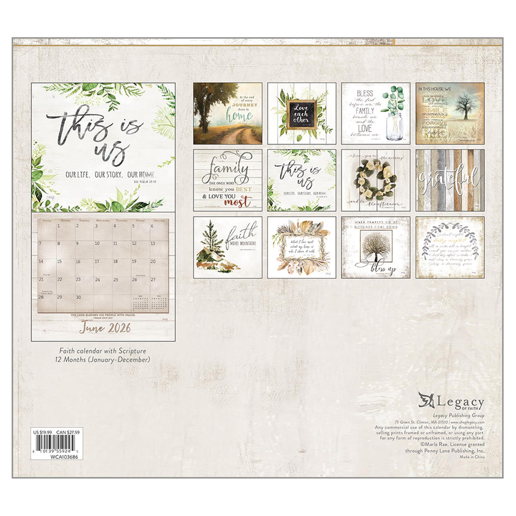 Ce calendrier mural Legacy 2026 présente les œuvres contemporaines de l'artiste Marla Rae, associées à des versets bibliques encourageants et inspirants pour réconforter, inspirer et fortifier familles et amis. Chaque calendrier de 12 mois est imprimé sur un papier haut de gamme gaufré lin, offrant un toucher luxueux et unique, et est livré dans une pochette de protection. Le bloc-dates est conçu spécifiquement pour chaque calendrier afin de s'harmoniser avec les illustrations. La dernière page contient un calendrier sur deux ans (2026/2027) et un espace pour les notes. Un renfort en laiton sur la couverture assure une durabilité accrue.