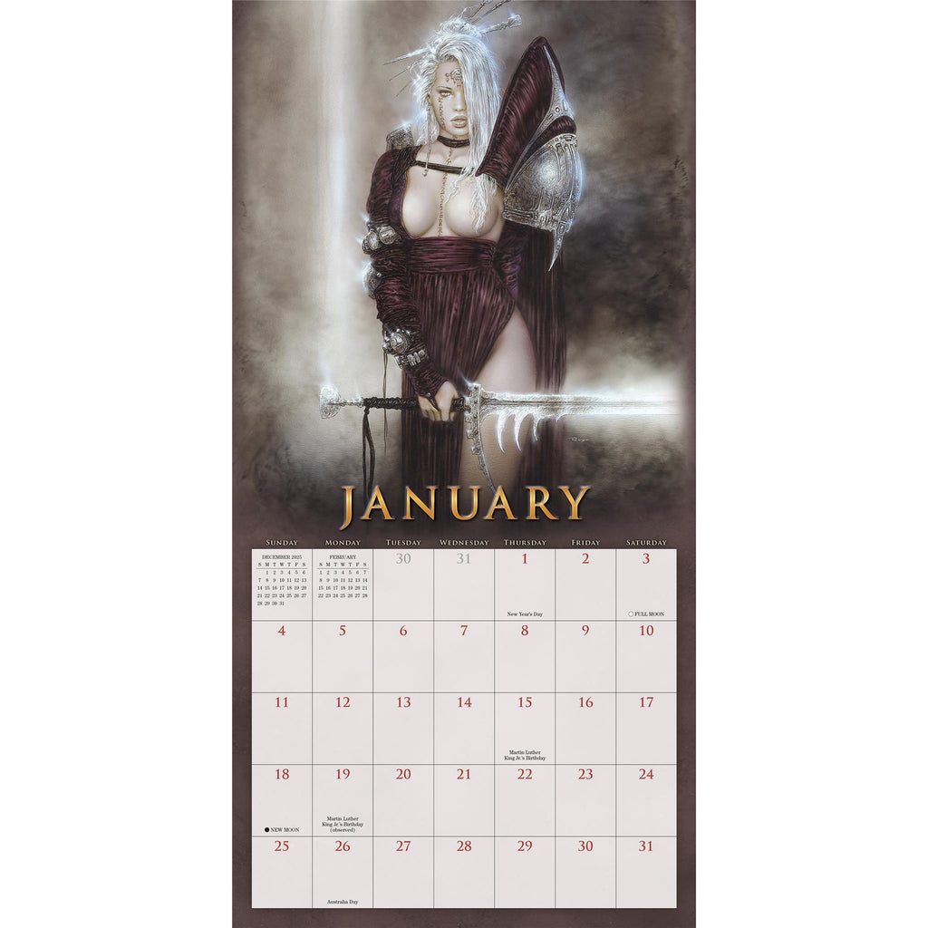 Les peintures de femmes sensuelles dans des paysages apocalyptiques et des mondes fantastiques ont fait de Luis Royo l'un des illustrateurs les plus populaires et prolifiques au monde aujourd'hui, et ce calendrier présente certaines de ses œuvres préférées des fans.