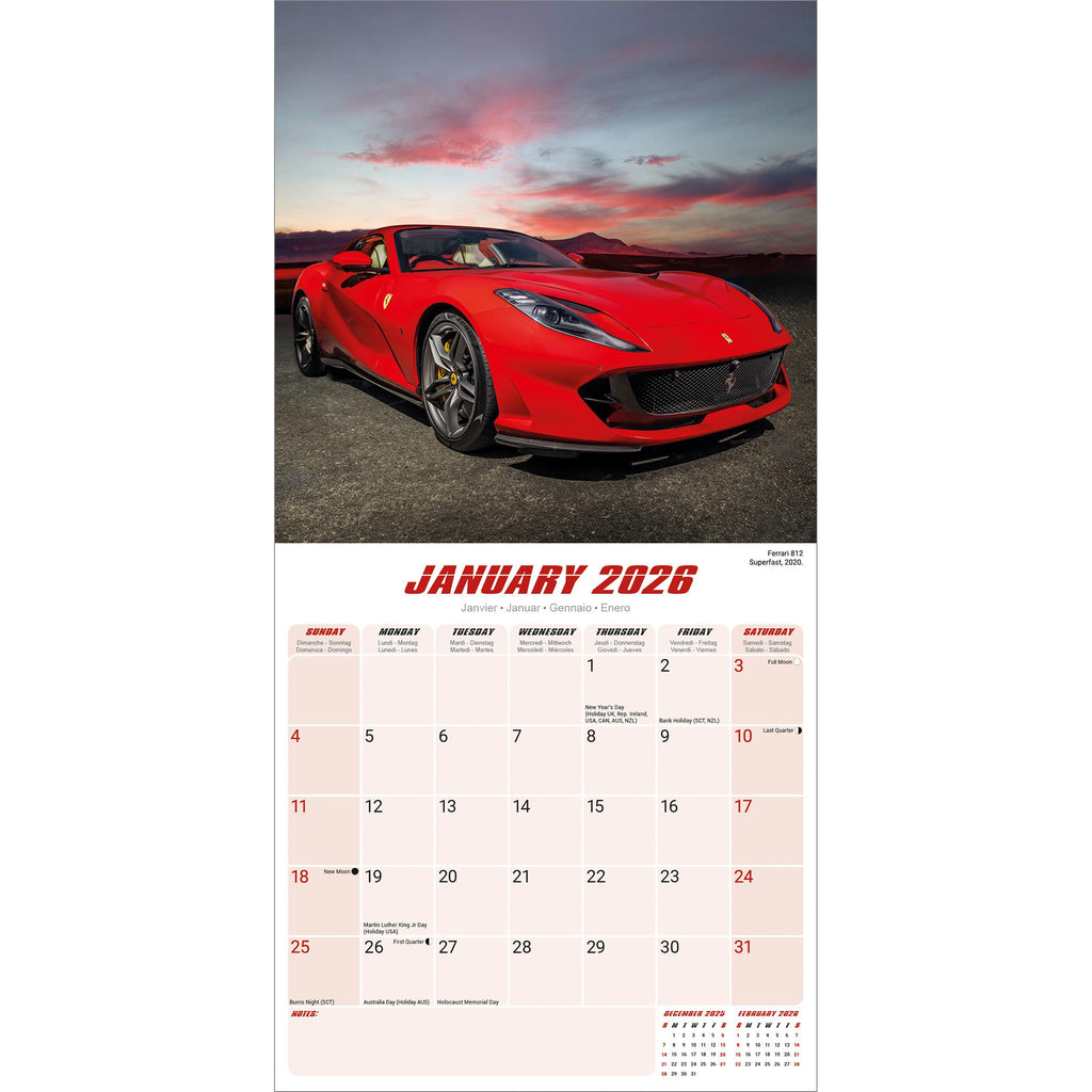 Ce calendrier 2026 de haute qualité est idéal pour les passionnés de Ferrari. Parfait pour les amateurs de supercars et de vitesse, il met magnifiquement en valeur le constructeur automobile italien Ferrari. Son grand format est idéal pour la maison et le bureau, avec suffisamment d'espace pour noter les anniversaires et autres informations. Il inclut une liste complète des dates des fêtes religieuses et festivals du monde entier. 100 % sans plastique et recyclable. Sans film rétractable.