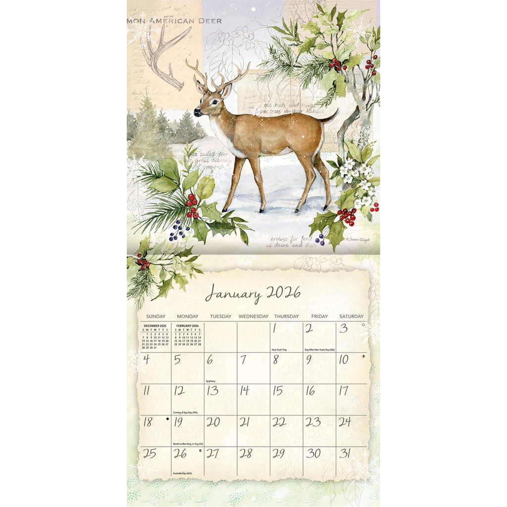 Le mini calendrier mural Field Guide 2026 présente des illustrations de Susan Winget sur le thème de la nature, décorant chaque mois de l'année. Les mini calendriers muraux LANG sont fabriqués sur un élégant papier gaufré lin et présentent un format compact.