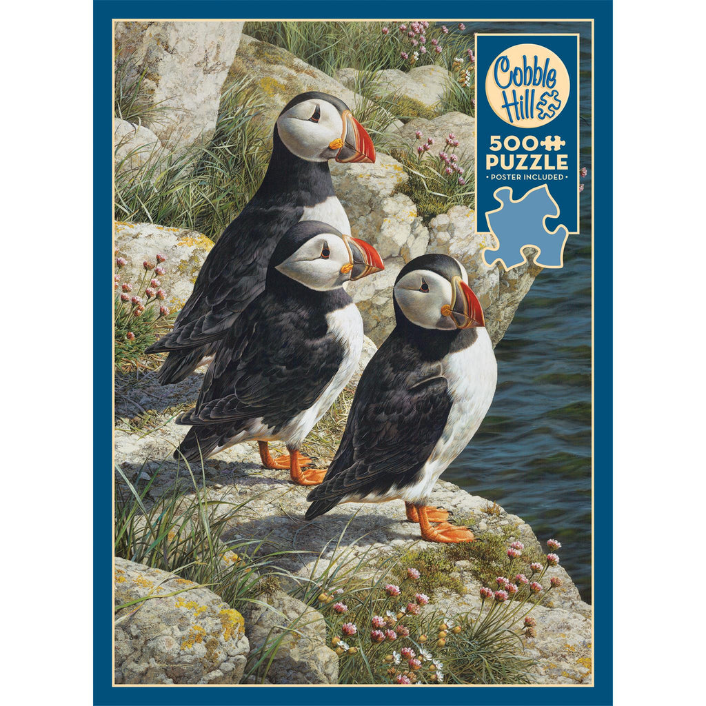 Peint par le célèbre artiste animalier Carl Brenders, ce puzzle de 500 pièces capture à merveille trois macareux colorés contemplant les vagues de l'océan. Les puzzles Cobble Hill se distinguent par leurs pièces aux formes aléatoires originales, ce qui rend chaque puzzle unique. Un poster pratique est inclus.