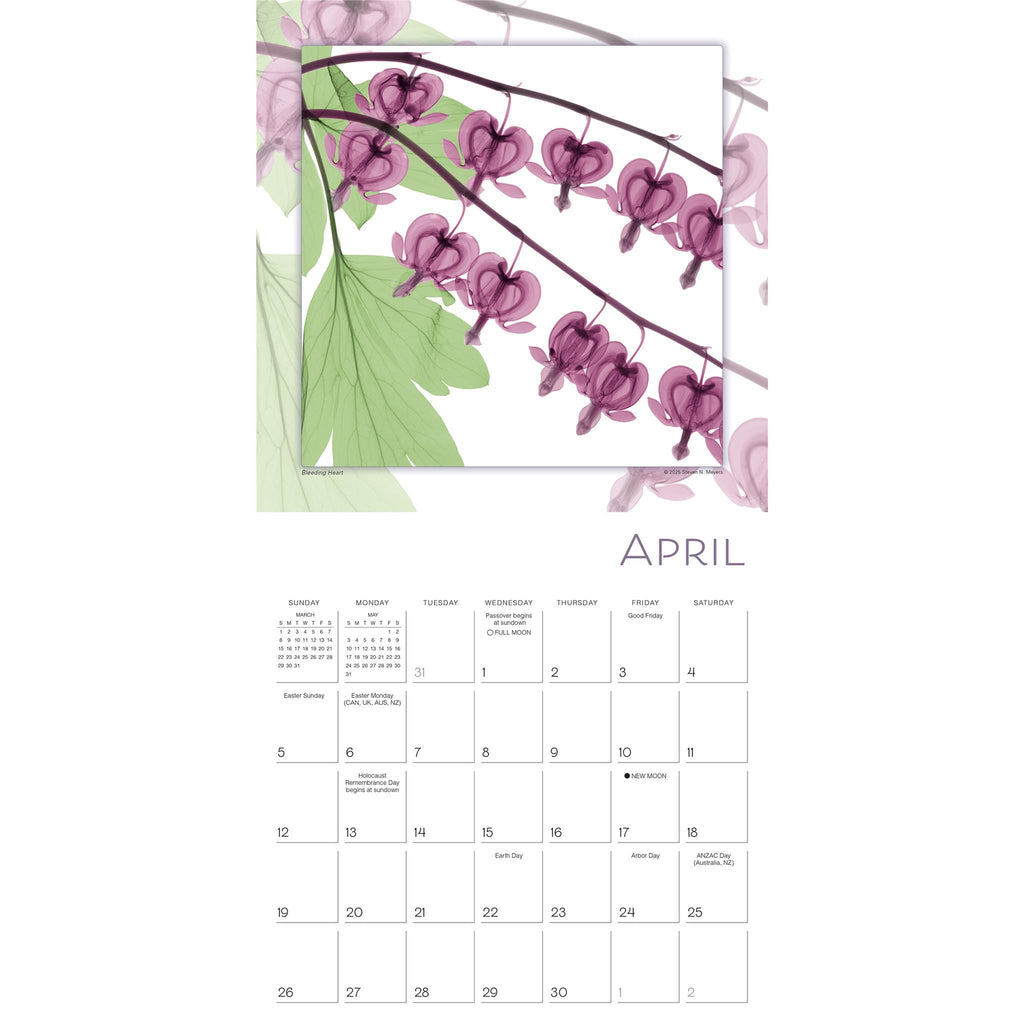 Les magnifiques images de Steven Meyers, publiées dans Flower Spirits, connaissent un immense succès depuis leur parution il y a plus de dix-huit ans. La technique de la radiographie permet à l'artiste de révéler les détails lumineux des plantes, invisibles à l'œil nu. L'édition 2026 présente treize de ces images enchanteresses et constitue une belle façon de se souvenir des fleurs qui ont marqué l'année.
