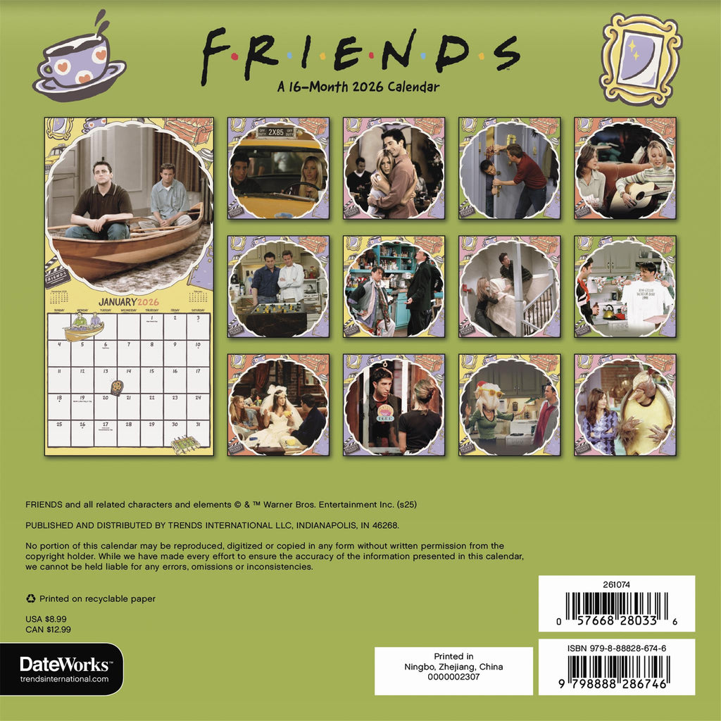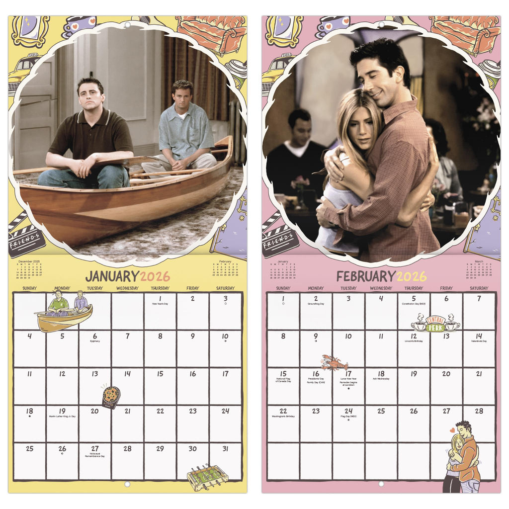 Bienvenue dans le monde réel ! C'est dur. Vous allez adorer, surtout si vous passez l'année avec les personnages de Friends. Comment vous en sortiriez-vous sans le mini-calendrier Friends 2026 ? Oh mon Dieu, n'y pensez même pas ! Idéal pour les petits espaces, ce mini-calendrier de 16 mois comprend des pages mensuelles de janvier à décembre 2026, ainsi qu'une page regroupant les quatre derniers mois de 2025. Chaque page mensuelle inclut les jours fériés et les phases de la lune, avec des cases journalières pour noter vos tâches et rendez-vous et vous aider à rester organisé(e). Il contient 13 images de haute qualité dans un format compact, imprimées sur du papier premium certifié FSC (Forest Stewardship Council). Parfait pour les casiers scolaires, les camping-cars, les petits bureaux et les chambres d'étudiants.
