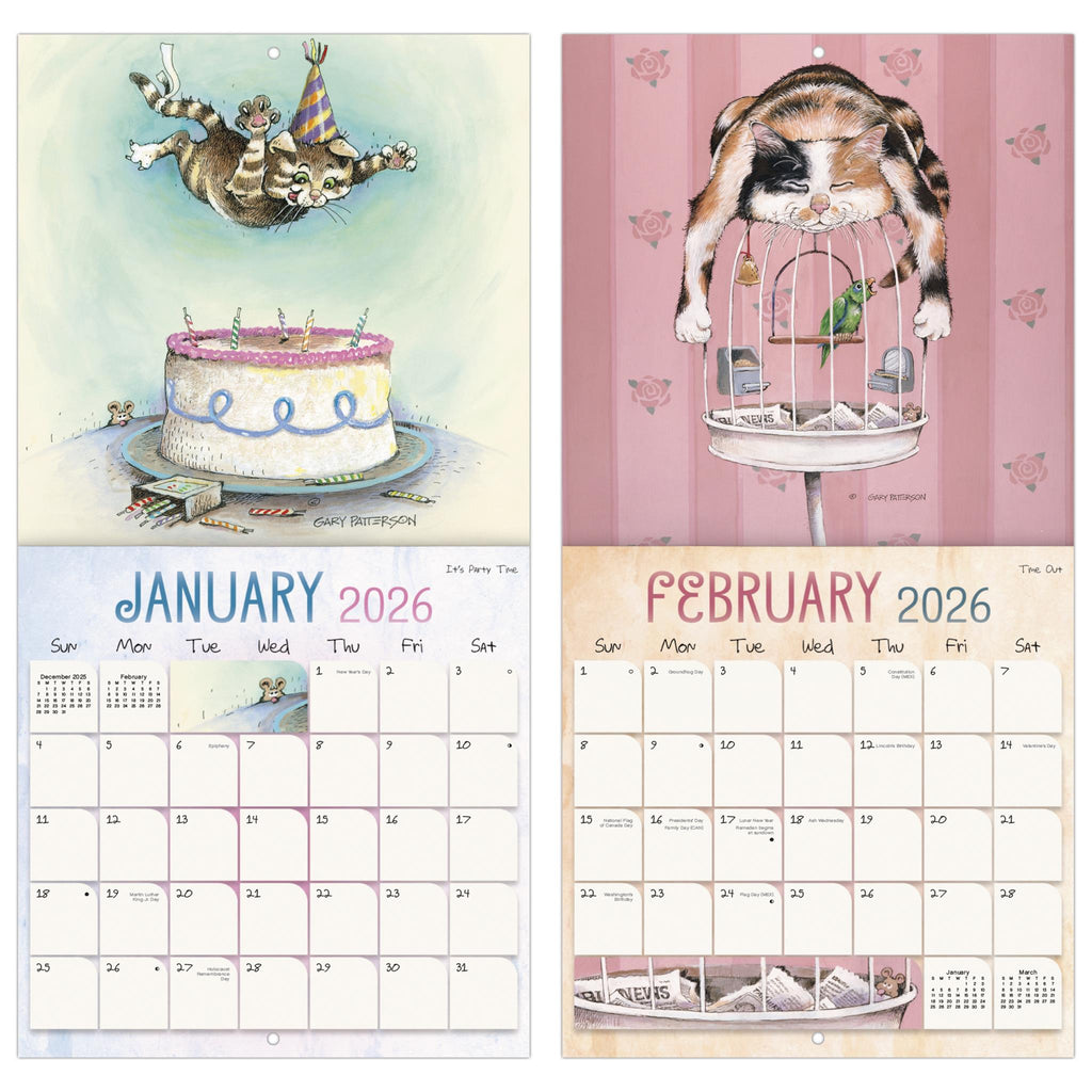 Gary Patterson, dessinateur et créateur de sourires, et ses illustrations irrésistibles mettent en scène des chats malicieux dans son mini-calendrier 2026. Idéal pour les petits espaces, ce mini-calendrier de 16 mois propose des pages mensuelles de janvier à décembre 2026, ainsi qu'une page regroupant les quatre derniers mois de 2025. Chaque page mensuelle inclut les jours fériés et les phases de la lune, avec des cases journalières pour noter vos tâches et rendez-vous et vous aider à rester organisé. Ce calendrier compact, imprimé sur du papier premium certifié FSC (Forest Stewardship Council), présente 13 images de haute qualité. Parfait pour décorer les casiers d'école, les camping-cars, les petits bureaux et les chambres d'étudiant.