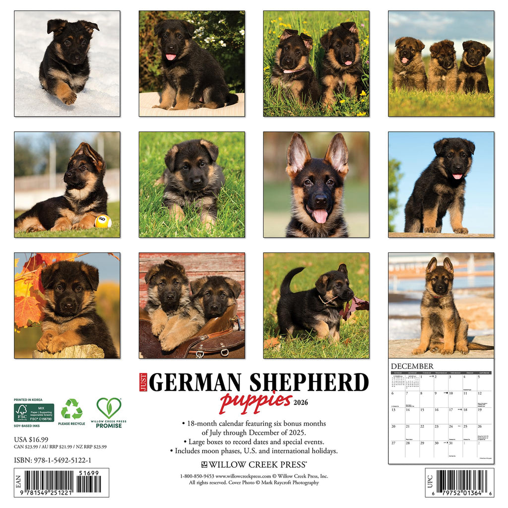 Avant de devenir de magnifiques chiens adultes, les bergers allemands passent par l'enfance. Ces douze photos en couleurs célèbrent cette courte et douce période où ces adorables chiots ne connaissent que le plaisir et l'innocence. Organisez-vous pour l'année à venir avec le calendrier mural 2026 de Willow Creek Press (30,5 x 30,5 cm). Ce calendrier dispose de grandes cases pour noter facilement les dates et les événements, vous aidant ainsi à rester efficace et à respecter vos engagements. Laissez ce calendrier vous guider vers une année plus organisée, réussie et épanouissante. CADEAU IDÉAL - Ne cherchez plus le cadeau parfait pour toute occasion spéciale. Rendez l'année de quelqu'un inoubliable avec l'un de nos calendriers muraux 2026. Nos calendriers sont le choix idéal pour vos amis et votre famille, même pour ceux qui sont difficiles à satisfaire. PLANIFICATION - Restez organisé et inspiré tout au long de l'année. Ce calendrier est idéal pour prendre des notes, noter les dates importantes, suivre les rendez-vous et faciliter l'organisation des activités familiales. IMAGES EXCEPTIONNELLES - Des images en couleurs nettes et détaillées chaque mois, pour décorer vos murs à la maison, au bureau ou à l'école. GRANDES CASES - Format 30,5 x 30,5 cm, avec de larges cases journalières offrant un espace d'écriture généreux. QUALITÉ SUPÉRIEURE - Papier de haute qualité qui reste bien à plat une fois accroché et offre des couleurs vives et éclatantes. VUE D'ENSEMBLE MENSUEL - Planifiez vos mois à venir ou consultez les mois précédents en un coup d'œil grâce aux grilles. ÉCO-RESPONSABLE - Willow Creek Press s'engage pour l'environnement et la durabilité de ses produits. Nos calendriers muraux 2026 (30,5 x 30,5 cm) sont imprimés avec des encres à base de soja sur du papier certifié FSC de haute qualité pour une écriture fluide. PÉRIODE - Calendrier mural 2026 avec 6 mois bonus de juillet à décembre 2025. FONCTIONNALITÉS SUPPLÉMENTAIRES - Jours fériés américains et internationaux et phases de la lune (heure centrale) indiqués pour chaque mois. Faites de cette année votre plus belle réussite grâce à ce magnifique calendrier mural. Apprenez à être plus efficace, un mois à la fois !