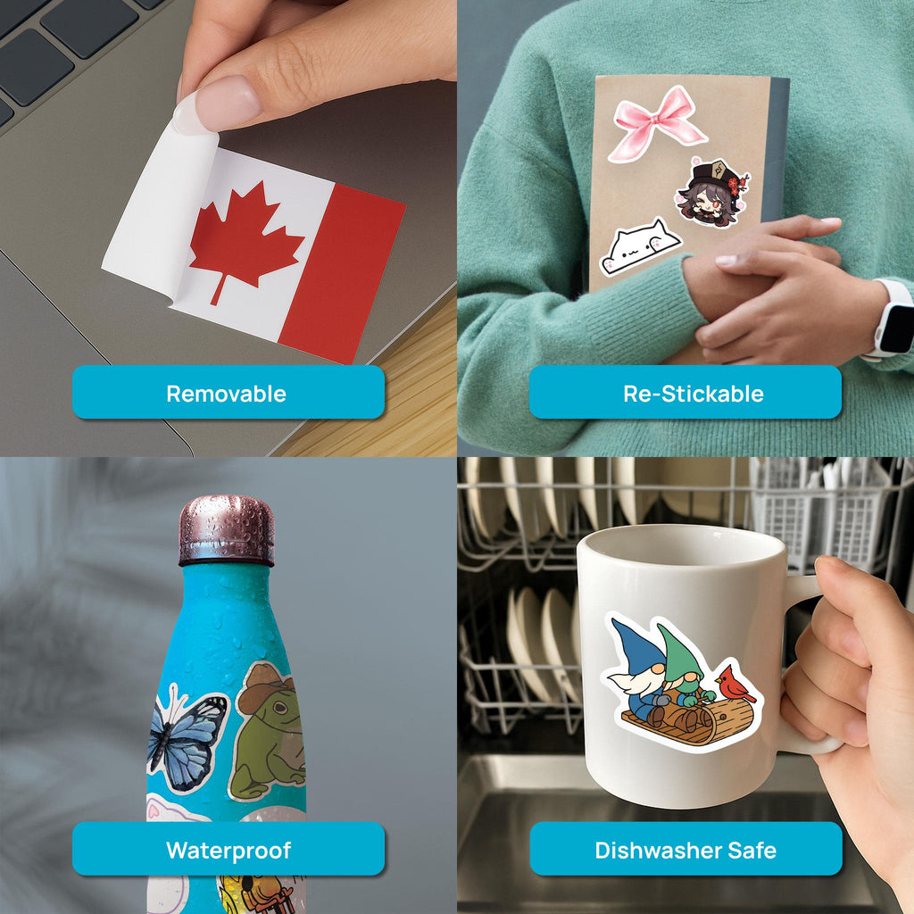 Libérez votre créativité, où que vous soyez ! La créativité ne devrait pas être confinée, alors pourquoi ne pas l'emporter partout avec vous ? Que vous soyez étudiant et souhaitiez personnaliser votre ordinateur portable, artiste et exprimiez votre style, ou professionnel et souhaitiez ajouter une touche personnelle à vos objets du quotidien, nos stickers en vinyle révèlent votre individualité. Résistants, imperméables et repositionnables, nos stickers vous suivent partout. Ordinateurs portables, gourdes, coques de téléphone, carnets, gobelets… vos objets préférés deviennent le reflet audacieux de votre personnalité. Avec des designs allant des plus vibrants et exubérants aux plus sobres et élégants, nous célébrons l'expression de soi. Rejoignez-nous et transformez vos objets du quotidien en pièces uniques.