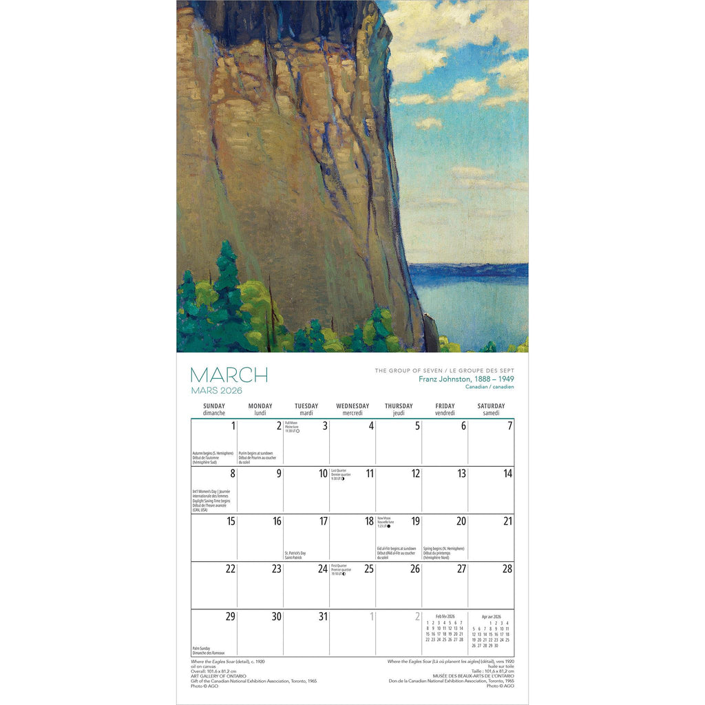 Entre 1919 et 1931, le Groupe des Sept a révolutionné la perception du paysage canadien à travers ses peintures. En collaboration avec le Musée des beaux-arts de l'Ontario, nous sommes heureux de vous présenter 13 œuvres du Groupe des Sept. Ce mini-calendrier mural est bilingue (anglais, français).