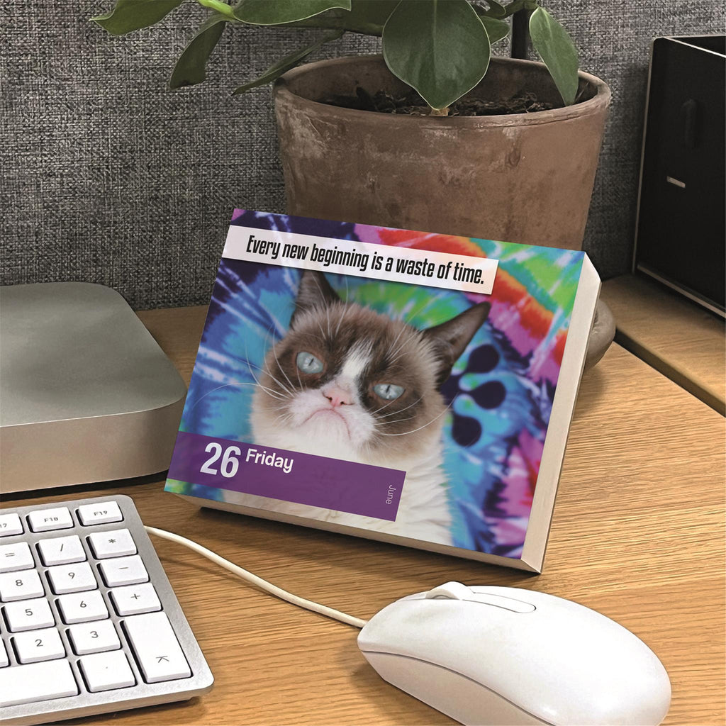 Passez l'année avec la chatte toujours boudeuse ! Le calendrier Grumpy Cat 2026 vous propose une page par jour. Il regorge d'images et de citations agacées de cette star d'Internet, pour toute l'année. De quoi avoir votre dose quotidienne de ses petites piques et de sa mine renfrognée ! Détachez simplement les pages pour découvrir une nouvelle illustration chaque jour de la semaine et une pour chaque week-end. Le calendrier tient sur un chevalet pliable et résistant. Cet emballage est sans plastique.