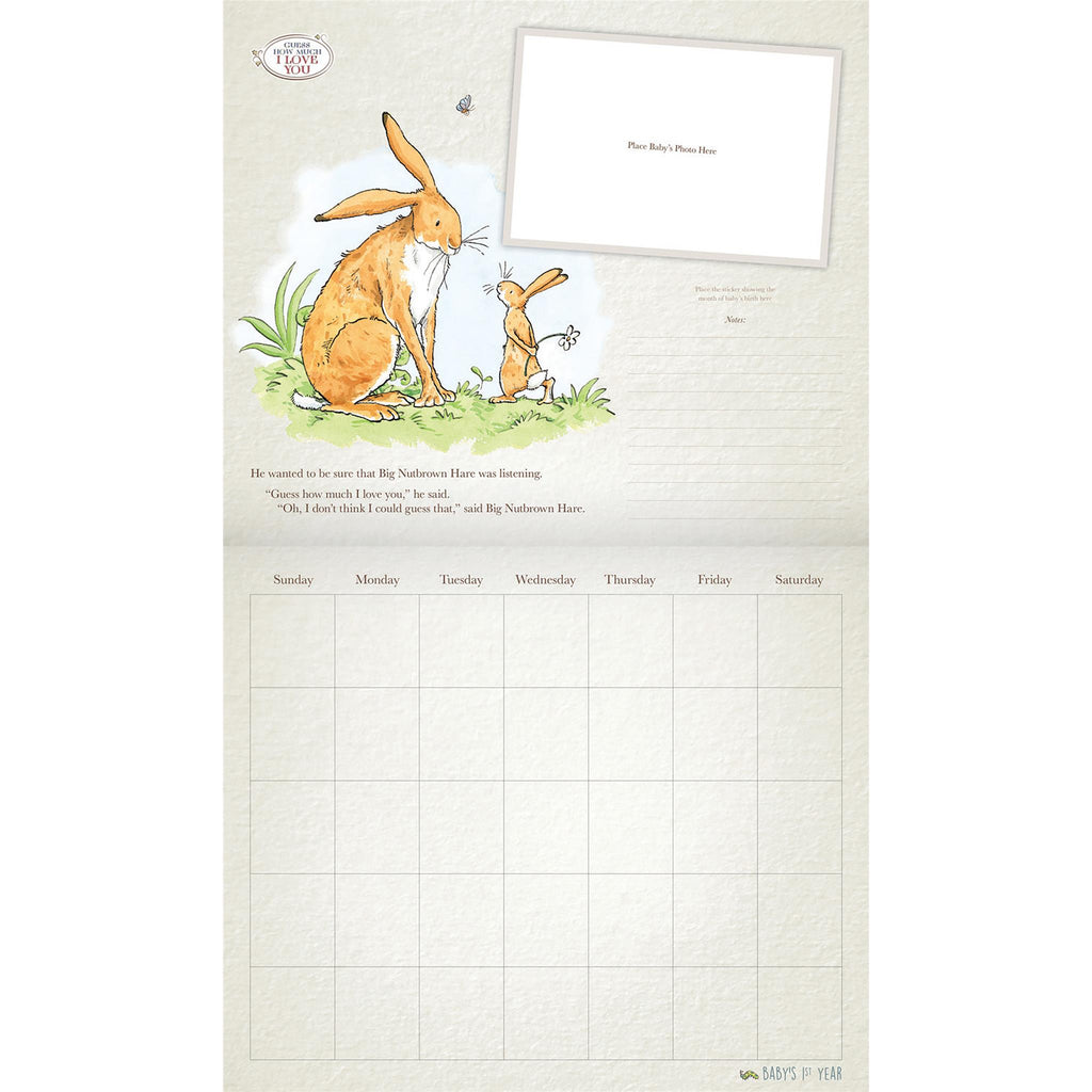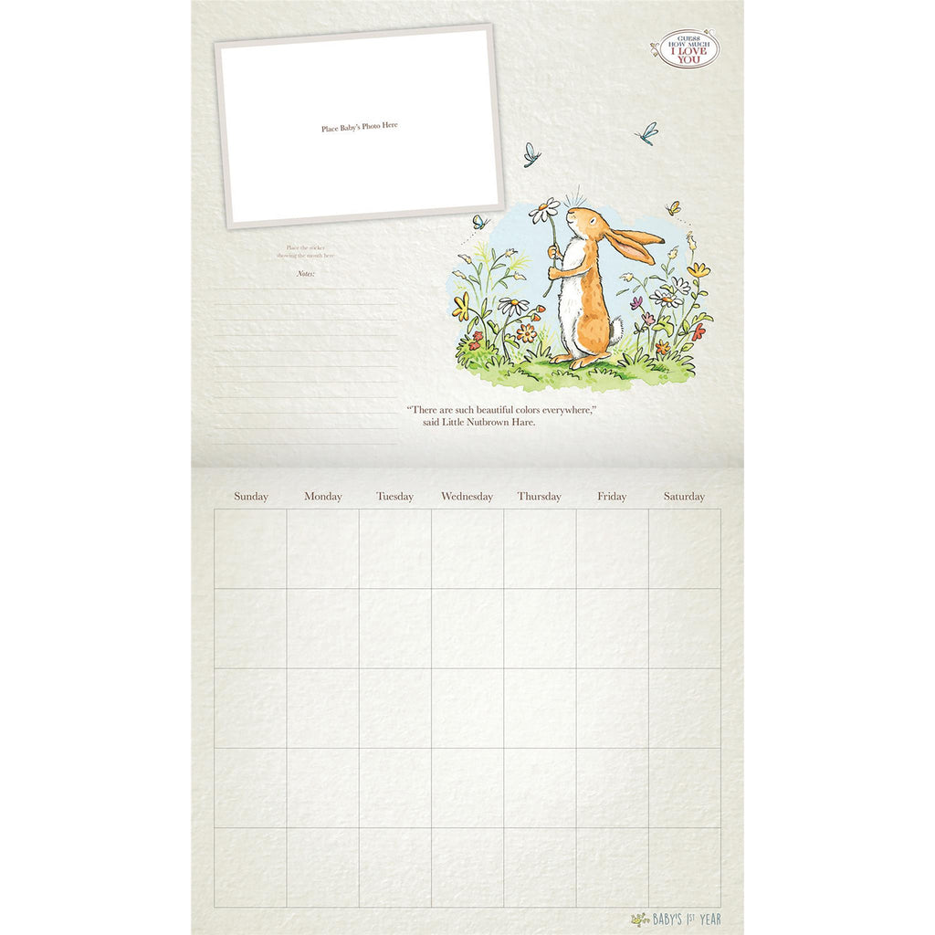 Immortalisez chaque précieux souvenir et étape importante de la première année de bébé grâce à ce charmant calendrier mural, orné d'adorables illustrations tirées des livres « Devine combien je t'aime ». Ce calendrier unique vous permet de créer un merveilleux souvenir qui retrace chaque moment spécial jusqu'au premier anniversaire de votre enfant.
