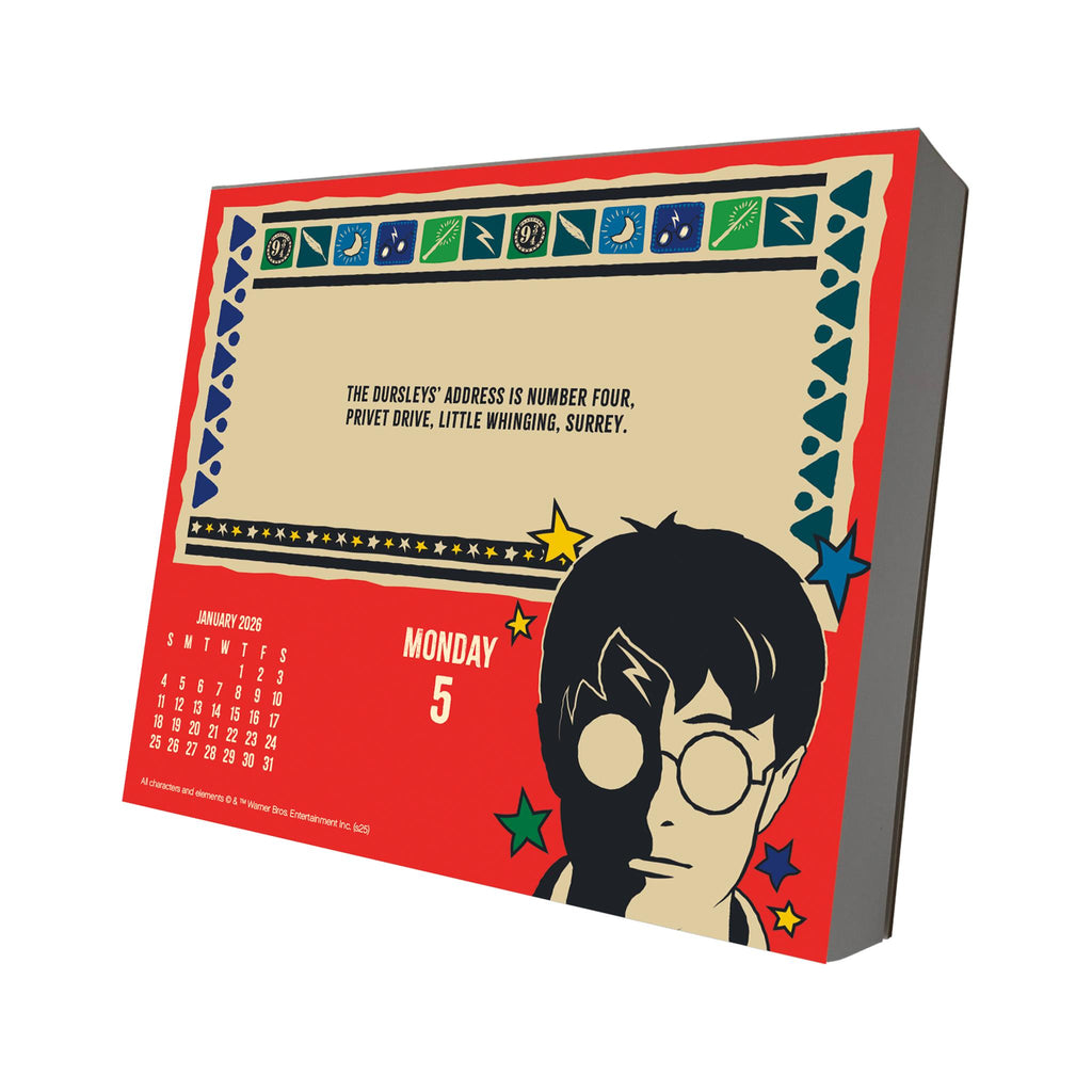 Plongez dans l'univers magique d'Harry Potter grâce à ce calendrier 2026 rempli de citations, d'anecdotes, d'images et peut-être même d'un ou deux sorts tirés des films cultes. Il ne contient pas de Retourneur de Temps, mais vous en rêverez peut-être en découvrant un peu de la magie d'Harry Potter chaque jour de l'année. Le cadeau idéal pour un proche, ou pour vous-même. Ce calendrier, présenté dans une case, propose plus de 300 pages détachables en couleur, chacune avec un design unique (les pages du week-end regroupent les samedis et dimanches). Les jours fériés et les phases de la lune sont indiqués pour vous aider à vous organiser. Un chevalet écologique et sans plastique est inclus pour une présentation facile sur votre bureau, votre table ou une étagère, à la maison, à l'école ou au bureau.