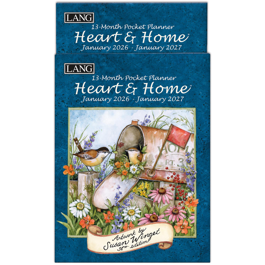 L'agenda de poche mensuel Heart & Home 2026 présente chaque mois des illustrations de Susan Winget représentant des scènes paisibles de maisons et de jardins, dans un format portable de 13 mois qui se glisse dans n'importe quelle poche ou sac à main.