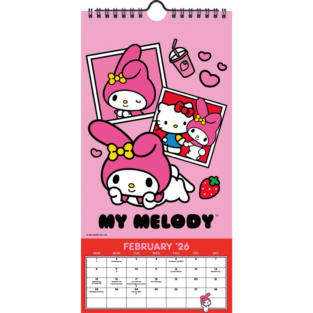 Hello Kitty, bonjour la gentillesse ! On n'a jamais trop d'amis ! Adoptez Hello Kitty avec le mini-calendrier 2026 Hello Kitty et ses amis. Vous la connaissez peut-être, mais connaissez-vous tous ses amis ? Il y a sa sœur jumelle Mimmy et sa meilleure amie My Melody, sans oublier Cinnamaroll, Chococat et bien d'autres. Découvrez-les tous ici ! Idéal pour les petits espaces, ce mini-calendrier de 16 mois comprend des pages mensuelles de janvier à décembre 2026, ainsi qu'une page regroupant les quatre derniers mois de 2025. Chaque page mensuelle indique les jours fériés et les phases de la lune. Les pages détachables et perforées se transforment en 13 posters muraux de haute qualité. La reliure spirale Wire-O est munie d'un crochet pour une suspension facile – parfait pour votre mur, votre tableau en liège ou votre casier à la maison, à l'école ou au bureau.