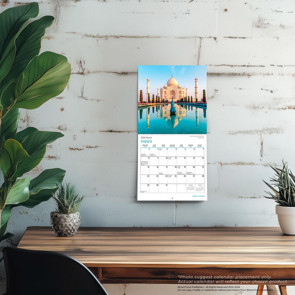 Un calendrier pour la personne qui aime voyager ! Parcourez l'année grâce à 12 illustrations extraordinaires de destinations exotiques. Ce mini calendrier est réalisé en français. - - - Pour les passionnés de voyages, proposant des destinations populaires et étonnantes.