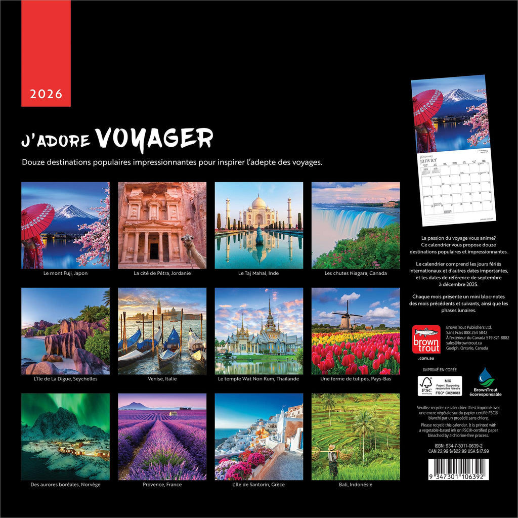 Un calendrier pour la personne qui aime voyager ! Parcourez l'année grâce à 12 illustrations extraordinaires de destinations exotiques. Ce calendrier mural carré est produit en français. - - - Pour les passionnés de voyages, proposant des destinations populaires et étonnantes.