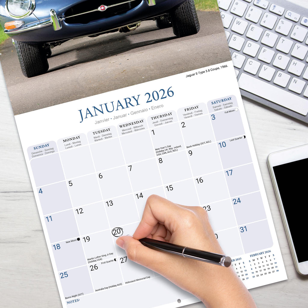 Notre calendrier premium 2026 comprend 13 pages, dont une page d'agenda reprenant les 4 mois de l'année précédente. Il contient 13 images en couleur de l'emblématique Jaguar. Jaguar est la marque de véhicules de luxe de Jaguar Land Rover, constructeur automobile multinational britannique dont le siège social se situe à Whitley, près de Coventry, en Angleterre. Jaguar Cars était la société responsable de la production des voitures Jaguar jusqu'à sa fusion complète avec Land Rover, donnant naissance à Jaguar Land Rover le 1er janvier 2013. Jaguar incarne l'élégance du design, la sportivité et l'excellence technique. Ce calendrier dispose d'une grande grille multilingue (anglais, français, allemand, italien et espagnol) pour noter vos dates importantes. Dimensions : 610 mm x 305 mm ouvert – 305 mm x 305 mm fermé. Ce magnifique calendrier de qualité supérieure est une publication britannique, imprimé sur du papier certifié FSC et présenté dans un emballage sans plastique. Faites-vous plaisir ou offrez-le en cadeau.