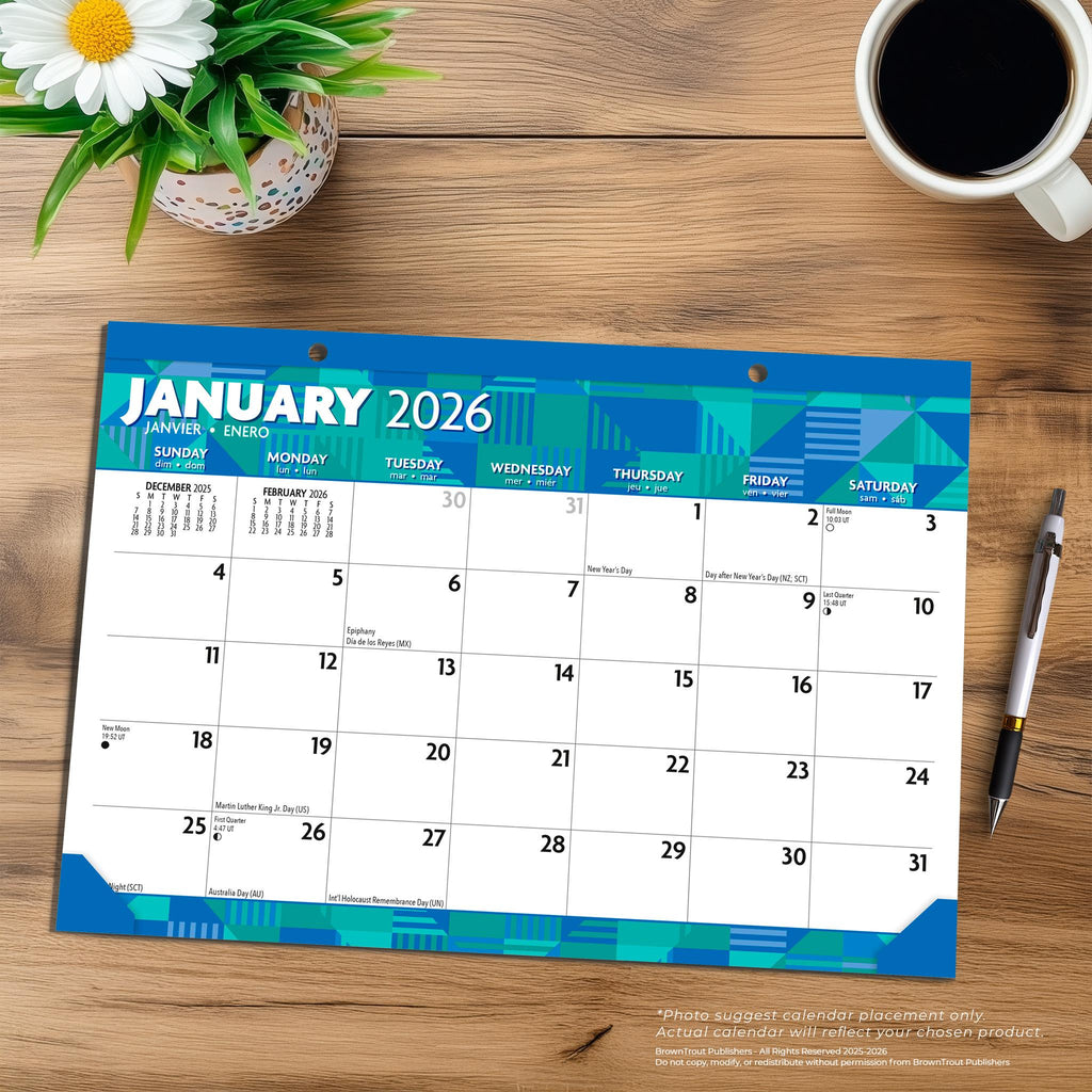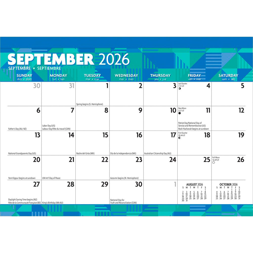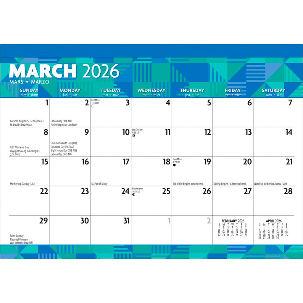 Ce bloc-notes de bureau à gros caractères présente des textes et des chiffres de grande taille pour une lecture facile, ainsi que de larges cases offrant suffisamment d'espace pour noter les rendez-vous et les dates importantes, idéal pour les personnes malvoyantes. Conçu pour être utilisé sur un bureau ou fixé au mur, ce format comprend des feuilles mensuelles, chacune dotée d'une grille de calendrier spacieuse.
