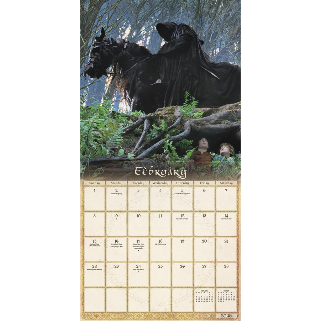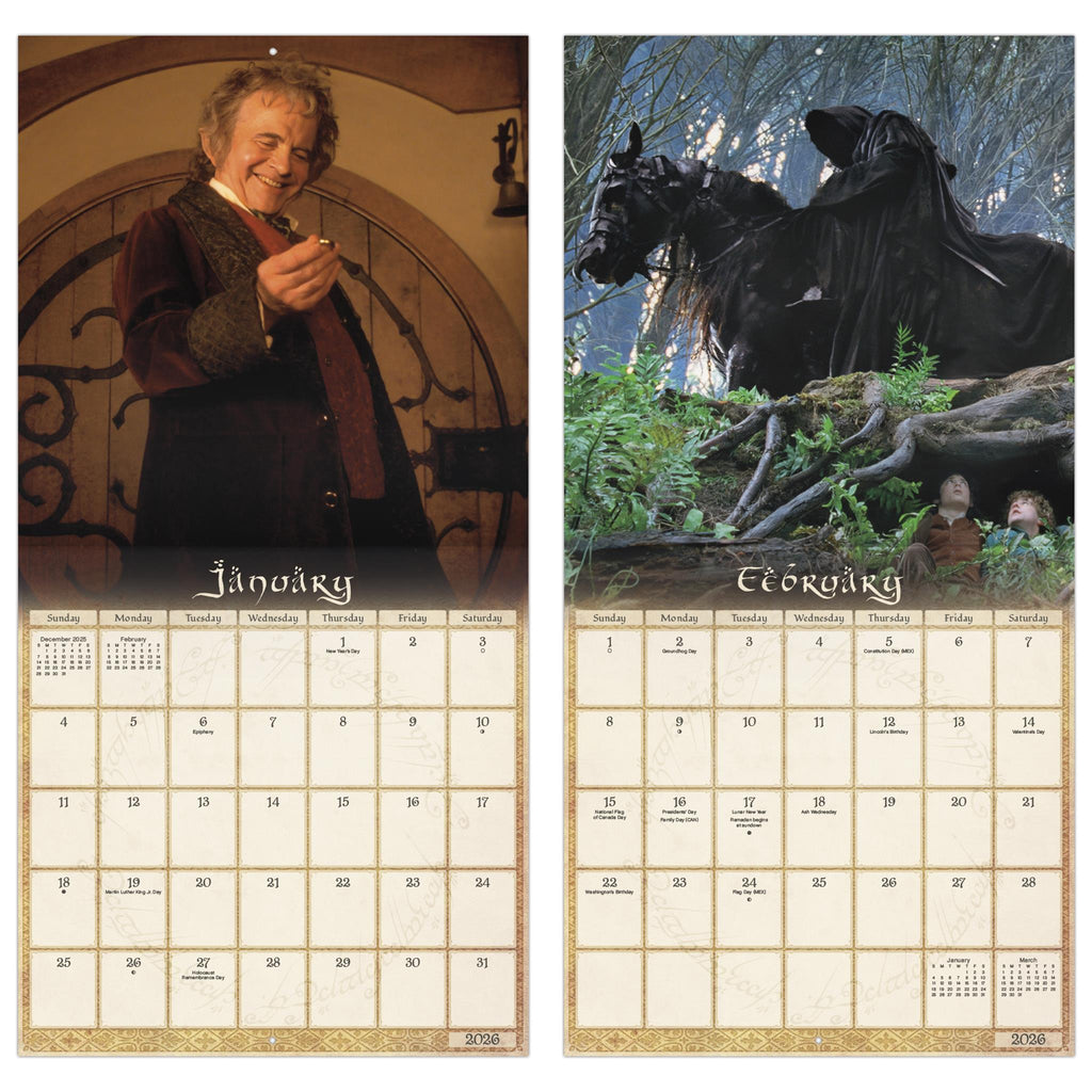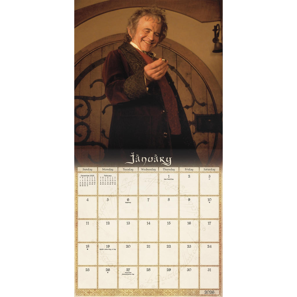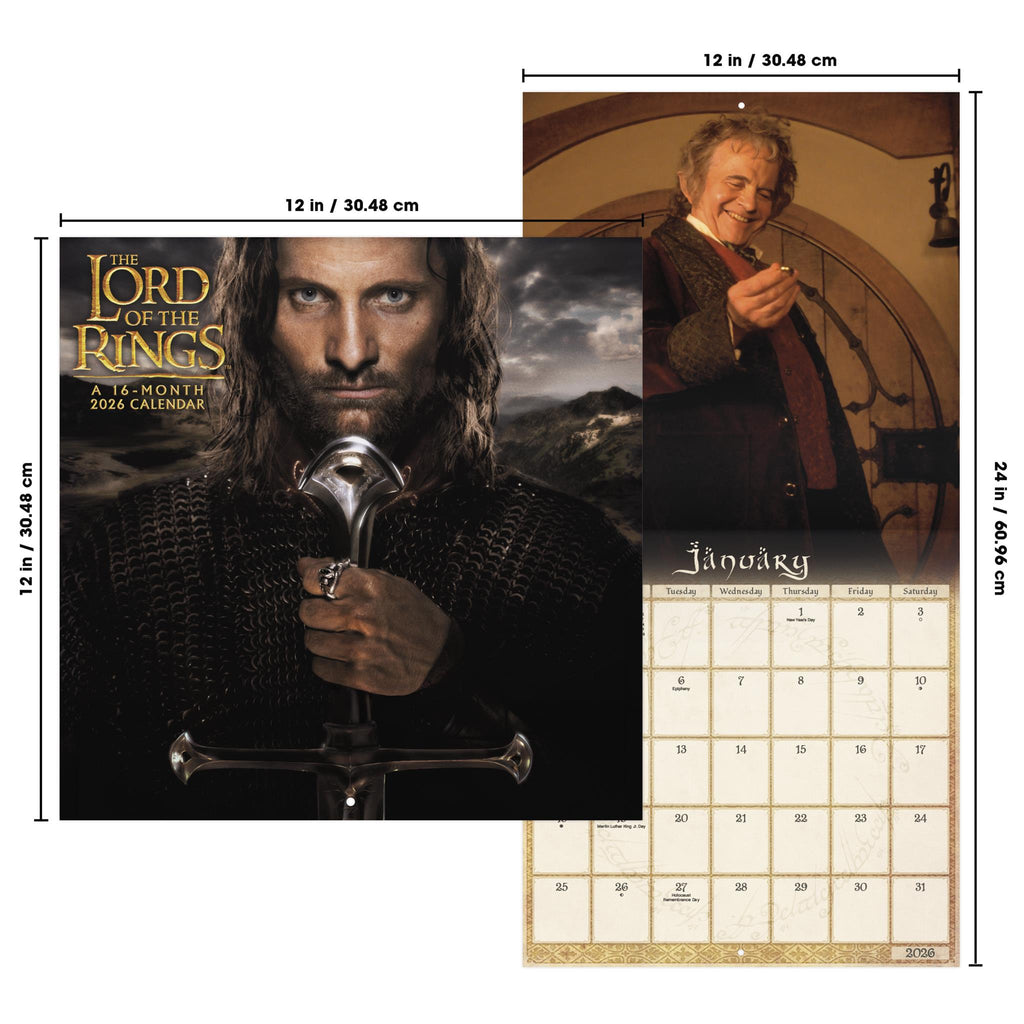 Laissez la magie de la Terre du Milieu s'inviter dans votre quotidien avec le calendrier 2026 du Seigneur des Anneaux ! Vivez une année fantastique et mystique, ponctuée de longs déjeuners et d'excursions dans les montagnes de feu en compagnie des hobbits Frodon, Sam, Pippin et Merry, et des autres personnages de la saga épique. Après tout, même le plus petit d'entre nous peut influencer le cours de l'avenir. Ce calendrier mural de seize mois présente des pages mensuelles pour janvier à décembre 2026, ainsi qu'une page regroupant les quatre derniers mois de 2025. Chaque page mensuelle inclut les jours fériés et les phases de la lune, avec suffisamment d'espace pour noter vos tâches et rendez-vous et ainsi vous aider à rester organisé. Il comprend 13 images de haute qualité imprimées sur du papier premium certifié FSC (Forest Stewardship Council). Idéal pour décorer vos murs, tableaux d'affichage ou panneaux de liège, à la maison, à l'école ou au bureau.