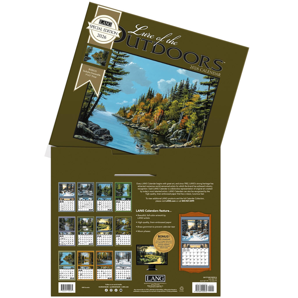L'édition spéciale « Attrait des grands espaces » du calendrier mural 2026 est ornée chaque mois d'illustrations de ruisseaux, de lacs et de rivières des forêts de l'édition spéciale, signées Bill Saunders. Les calendriers muraux LANG présentent des images mensuelles en couleur, un papier élégant gaufré lin et un œillet en laiton pour la suspension. Un tirage bonus de 23 x 30 cm, encadrable, est inclus pour décorer votre intérieur toute l'année !