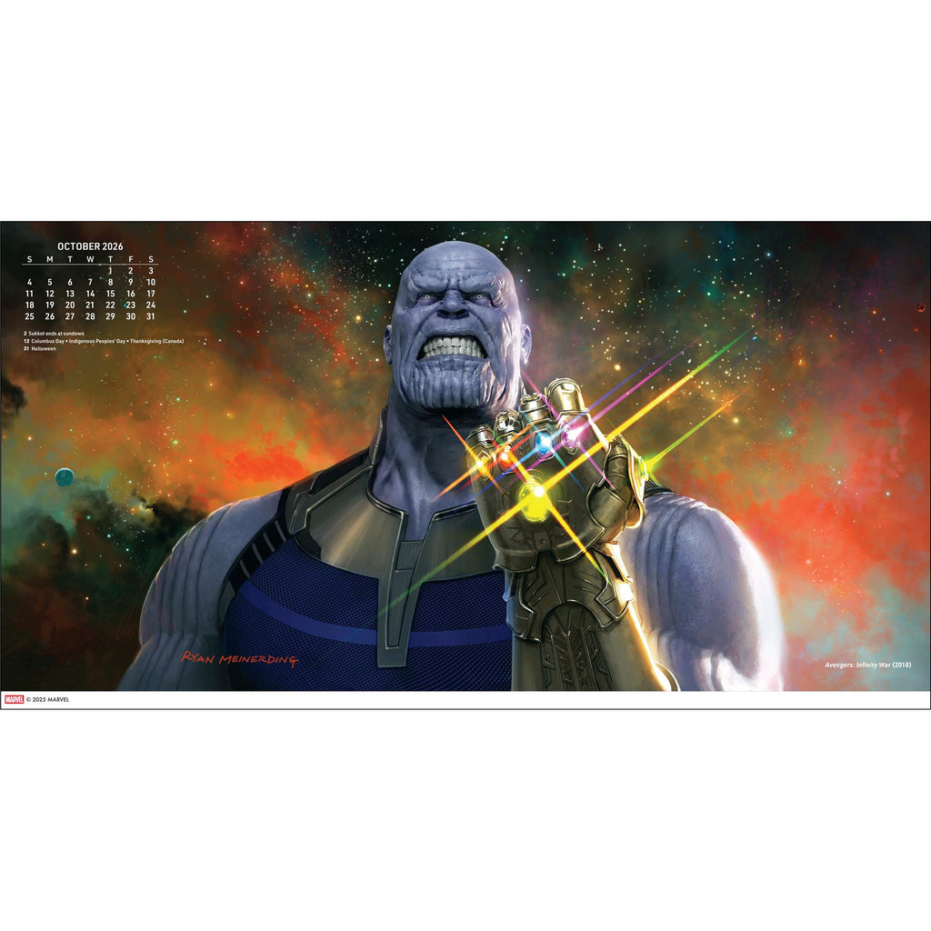 Ryan Meinerding, directeur du développement visuel chez Marvel Studios, est une figure créative incontournable depuis les débuts d'Iron Man (2008), contribuant largement à la conception visuelle des super-héros et super-vilains emblématiques de l'univers cinématographique Marvel. Son style unique et iconique est ici mis en valeur à travers 13 images dynamiques et pleines d'action. Avec des héros légendaires tels que Captain America, Black Panther, Doctor Strange, Hulk et bien d'autres, ce calendrier mural de 12 mois est un must pour tout fan de Marvel. Également disponible : Marvel Studios : L'Art de Ryan Meinerding (Abrams, automne 2024). Caractéristiques : 30,5 x 30,5 cm (30,5 x 61 cm ouvert). Imprimé sur papier certifié FSC® avec des encres à base de soja. Planification de septembre à décembre 2025. Couvre janvier à décembre 2026. Grand espace quadrillé pour les notes, rendez-vous et rappels. Jours fériés et commémorations officiels. Phases de la lune, selon le temps universel. 13 images des super-héros et super-vilains Marvel les plus appréciés.