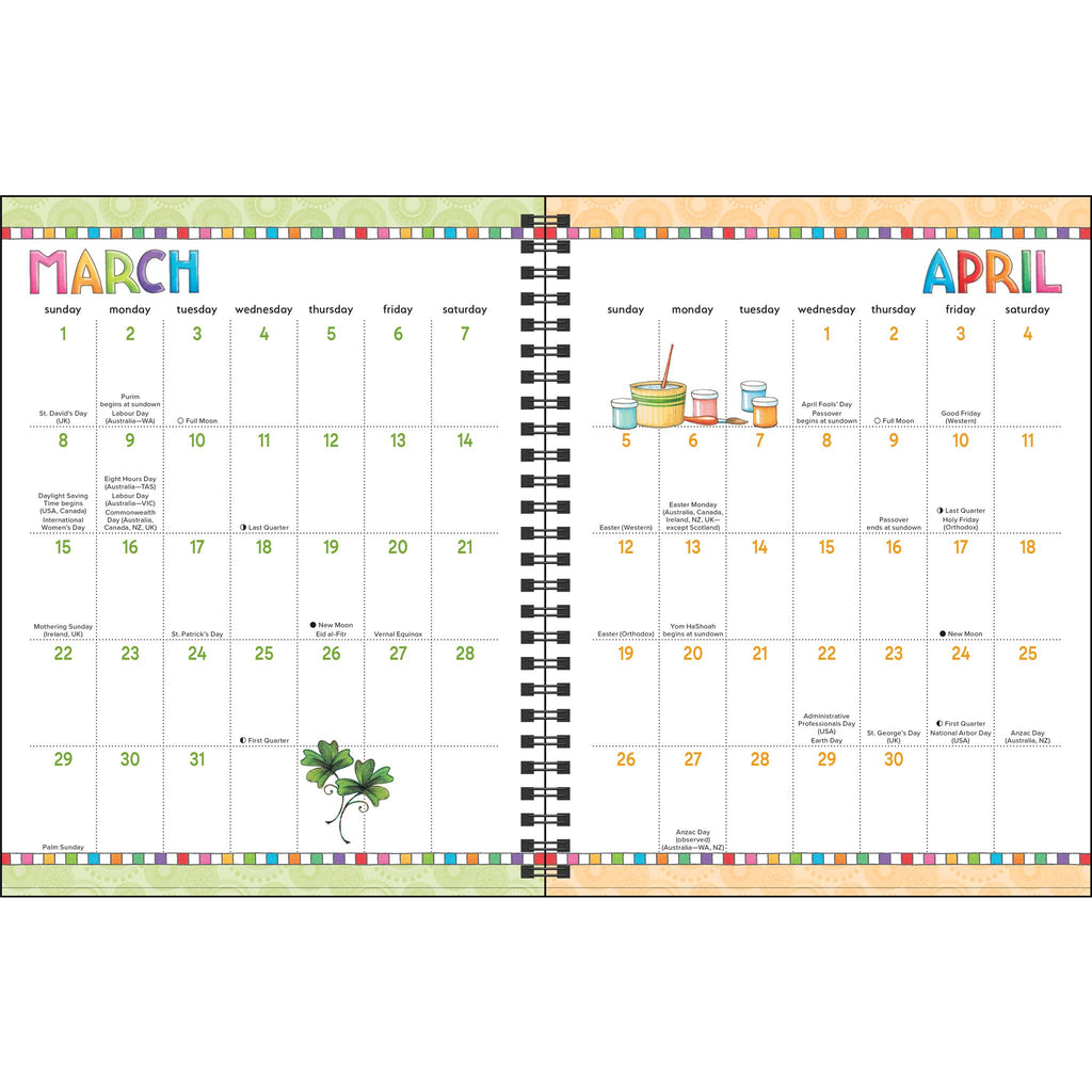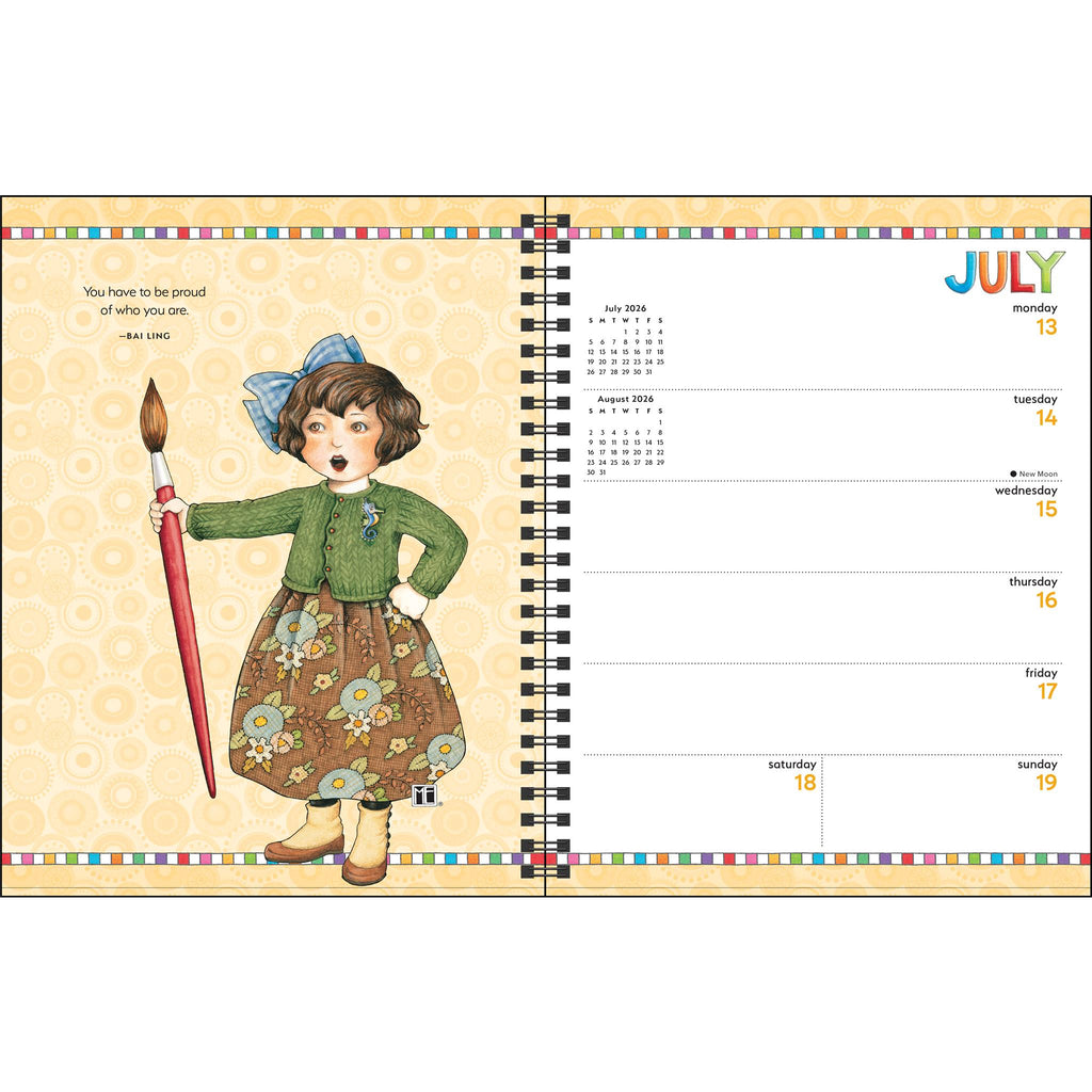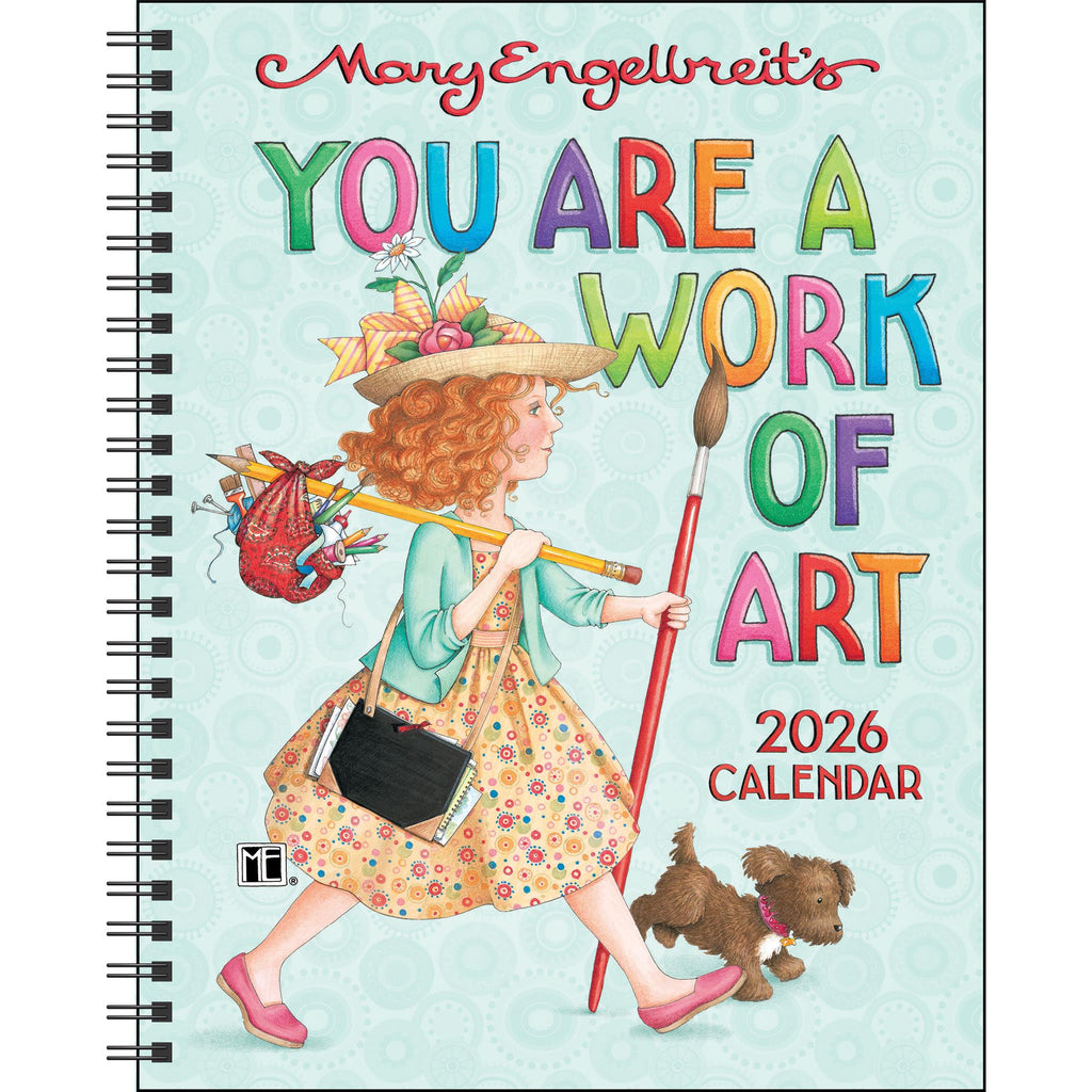 L'agenda mensuel/hebdomadaire 2026 « You Are a Work of Art » de Mary Engelbreit regorge d'images qui reflètent le talent, le travail acharné, l'ambition, la créativité et la beauté. Quelle que soit votre façon d'aborder les situations de la vie, affirmez-vous et démarquez-vous. Caractéristiques : 17,8 cm x 22,9 cm (35,6 cm x 22,9 cm ouvert). Reliure spirale. Couverture souple et résistante. Imprimé sur du papier certifié FSC® avec de l'encre à base de soja. L'agenda s'ouvre à plat. Agenda de 12 mois : janvier-décembre 2026. Pages de planification hebdomadaires pour 2026 afin de noter vos événements, rendez-vous et réunions. Illustrations en couleur sur chaque double page hebdomadaire. Espace à la fin pour la planification de 2027 et pour noter les dates importantes, les noms, les numéros et les notes. Pages d'aperçu annuel pour 2025, 2026 et 2027. Jours fériés et commémorations officiels dans le monde. Phases de la lune, selon le temps universel. Une illustration en couleur et une citation sur chaque double page hebdomadaire.
