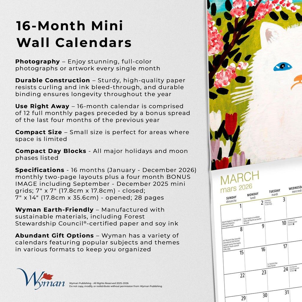 Format du calendrier : Agrafé avec grilles carrées extra-petites