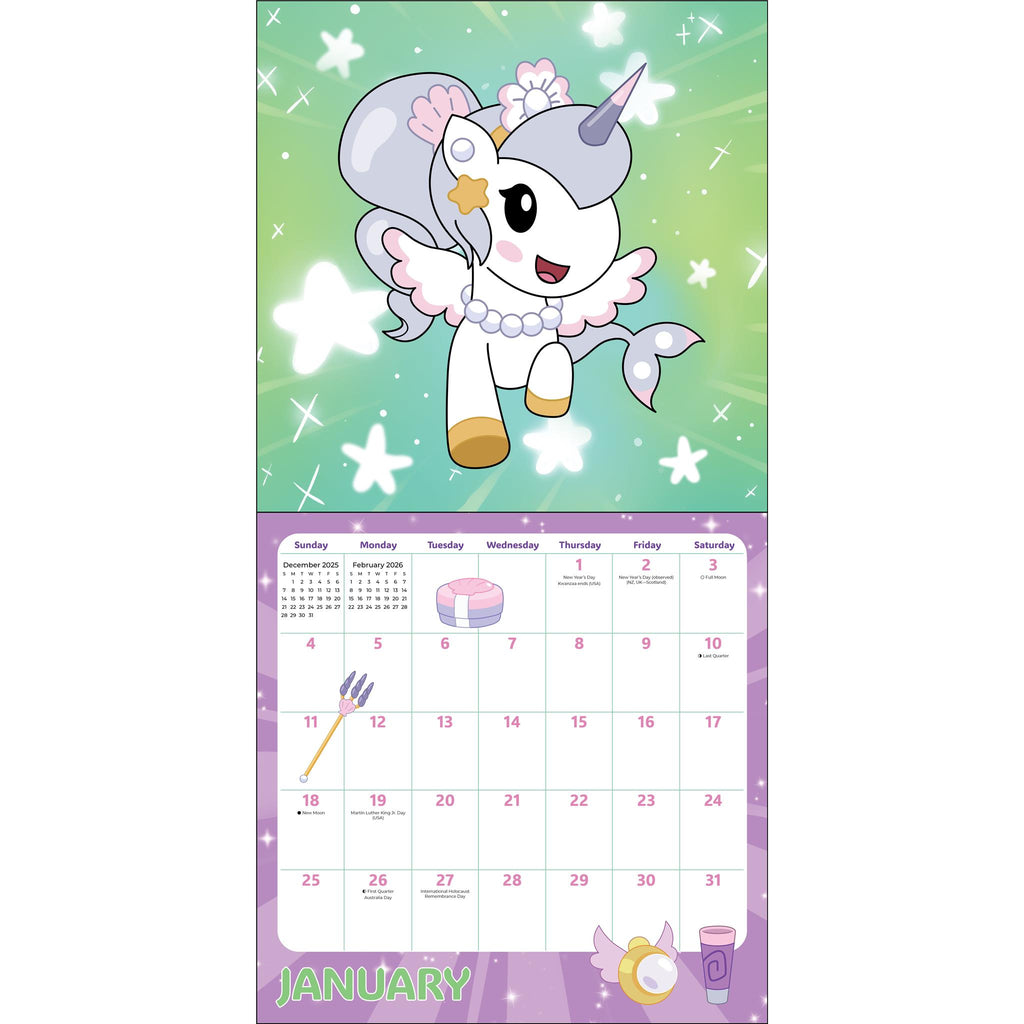 Explorez le monde sous-marin magique de Mermicorno : Starfall avec ce calendrier de 12 mois mettant en scène Astra, Gwen, Kameko, Squishella, Nautique et d'autres personnages attachants. Rejoignez les sirènes-licornes dans leur quête épique pour sauver l'océan, à travers leur voyage au Palais des Perles, la cité d'Octokyo et le repaire secret d'Ika Inkblot. Rempli d'illustrations colorées et joyeuses, ce calendrier fantastique est une invitation à la créativité, à l'amitié et à savourer le meilleur bol de ramen des océans ! Inspiré de la série animée Max Original de tokidoki et Atomic Cartoons. Caractéristiques : 30,5 x 30,5 cm (30,5 x 61 cm ouvert). Imprimé sur du papier certifié FSC® avec de l'encre à base de soja. Planification de septembre à décembre 2025. Couvre la période de janvier à décembre 2026. Grand espace pour vos notes, rendez-vous et rappels. Jours fériés et commémorations officiels. Phases de la lune, selon le Temps Universel Coordonnées (UTC). Illustrations colorées de Mermicorno : Starfall avec 50 autocollants bonus.