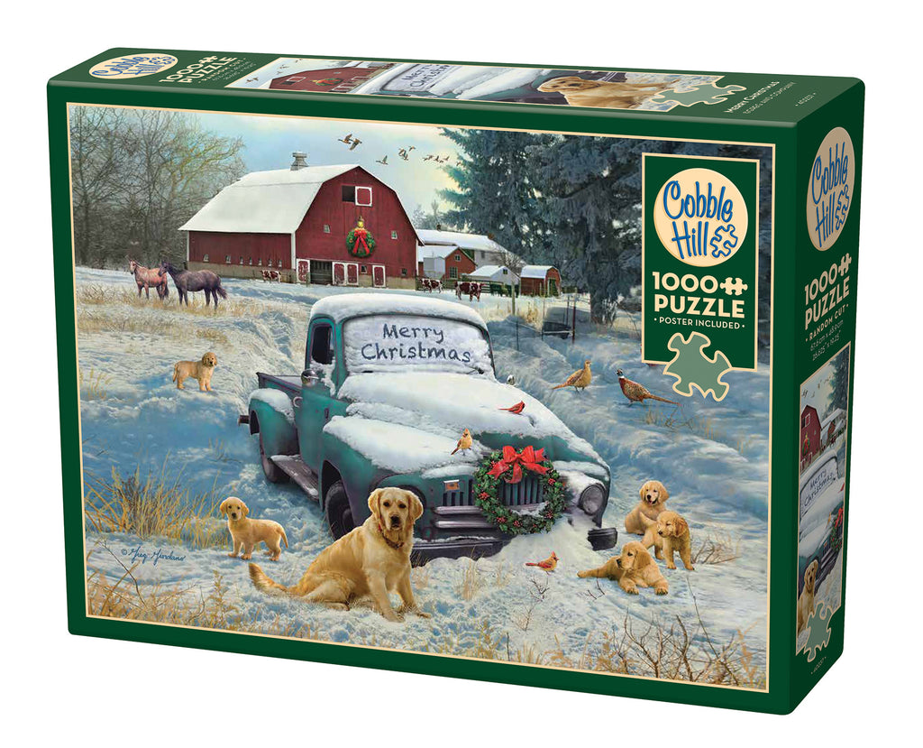 C'est sans conteste Noël dans toute sa splendeur : neige fraîche, chiots et air pur de la ferme. La seule vraie question est… qui a écrit « Joyeux Noël » sur la vitre du camion ? Étaient-ce les cardinaux ? Les puzzles Cobble Hill sont composés de pièces aux formes aléatoires originales, ce qui les rend toutes uniques. Un poster pratique est inclus.