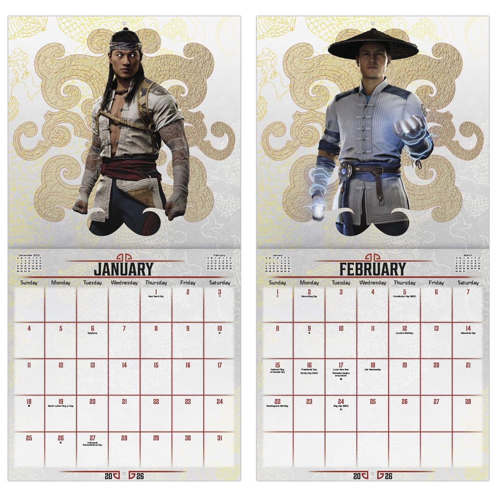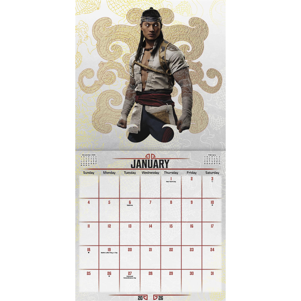 Revivez les scènes cultes et les personnages emblématiques de la franchise de jeux vidéo Mortal Kombat grâce au calendrier Mortal Kombat 2026. Que cette année vous porte chance, à vous et à vos amis ! Ce calendrier mural de seize mois présente des pages mensuelles de janvier à décembre 2026, ainsi qu'une page regroupant les quatre derniers mois de 2025. Chaque page mensuelle inclut les jours fériés et les phases de la lune, avec suffisamment d'espace pour noter vos tâches et rendez-vous et ainsi vous aider à rester organisé. Il comprend 13 images de haute qualité imprimées sur du papier premium certifié FSC (Forest Stewardship Council). Idéal pour décorer vos murs, tableaux d'affichage ou panneaux de liège, à la maison, à l'école ou au bureau.