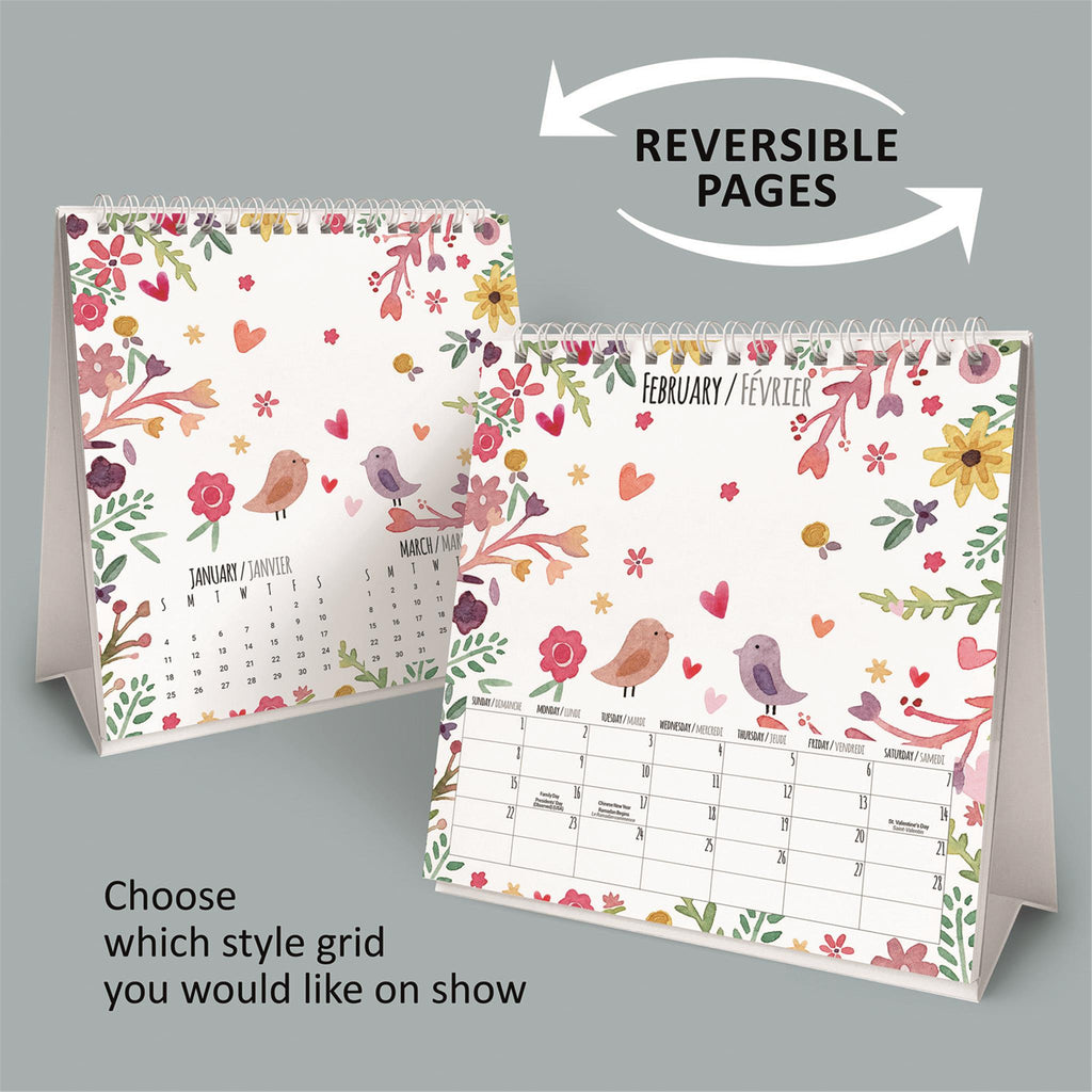 Personnalisez ce calendrier chevalet « Mes photos préférées 2026 » avec vos photos favorites pour vous remémorer vos plus beaux moments, ou offrez-le en cadeau à un être cher. Le calendrier s'ouvre pour se poser facilement sur un bureau ou toute autre surface plane, et vous pouvez insérer vos photos dans les emplacements prévus. Deux photos peuvent être affichées chaque mois : une sur la page principale et une sur la page de mini-grilles au verso. Chaque emplacement peut accueillir des photos de 10 x 15 cm.