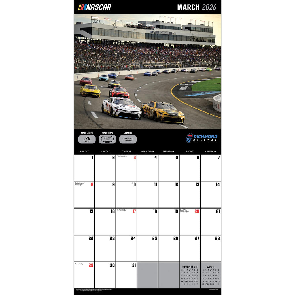 Envie de vitesse ? Plongez dans l'adrénaline des courses automobiles en parcourant douze circuits NASCAR palpitants ! Anecdotes à l'appui ! Suivez votre pilote préféré grâce au tableau de suivi des courses inclus ! Ce calendrier mural 2026 de 12 mois mesure 30,5 cm x 30,5 cm (30,5 cm x 61 cm ouvert) et comprend douze images en couleur, les grilles mensuelles et une double page bonus avec un tableau de suivi des courses. Imprimé sur papier glacé premium certifié FSC.
