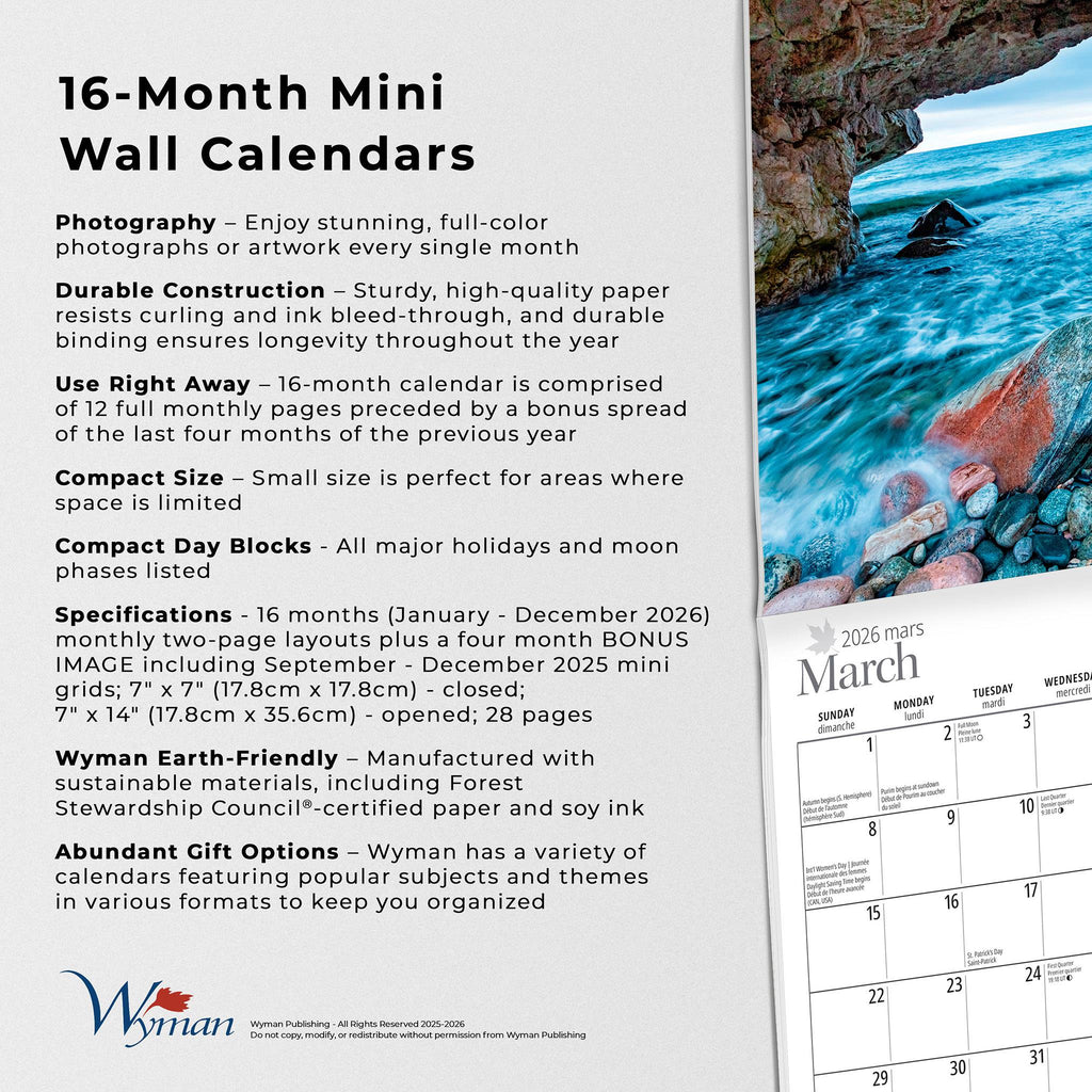 Ce calendrier rassemble pour votre plus grand plaisir des images de paysages à couper le souffle, de côtes sculptées par les vagues et des lieux de vie et de travail des habitants de Terre-Neuve-et-Labrador. Découvrez les paysages qui ont profondément marqué ce peuple et sa culture. Ce mini calendrier mural est en anglais.