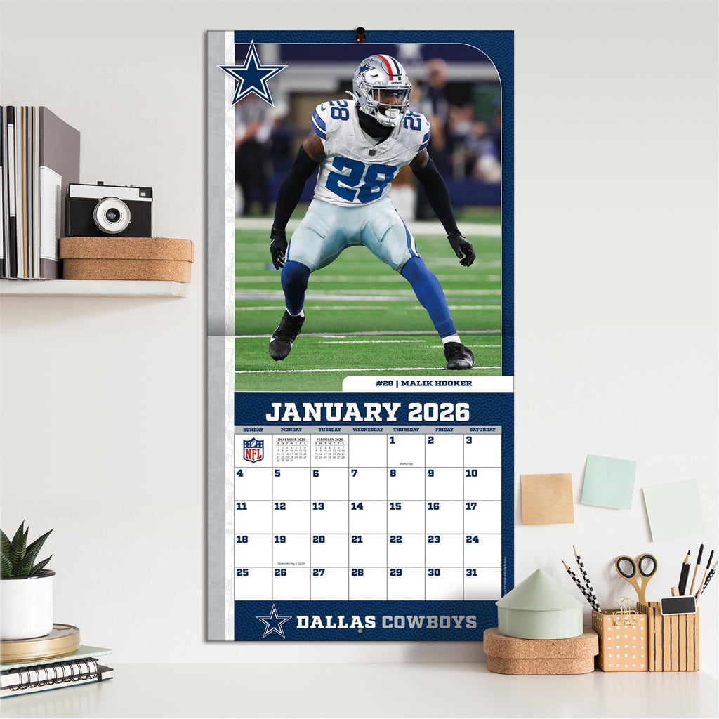 Conçu pour les passionnés de football américain, ce calendrier mural présente chaque mois des photos grand format de vos joueurs préférés des Dallas Cowboys ! Découvrez également la biographie de chaque athlète et de nouveaux visuels aux couleurs et logos de l'équipe. D'une qualité exceptionnelle, ce calendrier 30 x 30 cm inclut des pages bonus : septembre à décembre 2025 et les résultats des Super Bowls précédents ! Format 12 mois (janvier à décembre 2026). Dimensions : 30,5 cm (largeur) x 61 cm (hauteur) (ouvert).