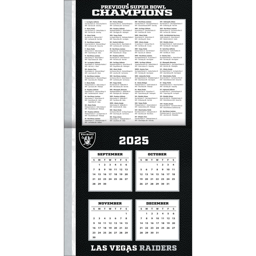 Conçu pour les passionnés de football américain, ce calendrier mural présente chaque mois des photos grand format de vos joueurs préférés des Raiders ! Découvrez également la biographie de chaque athlète et de nouveaux visuels aux couleurs et logos de l'équipe. D'une qualité exceptionnelle, ce calendrier 30 x 30 cm inclut des pages bonus : septembre à décembre 2025 et les résultats des Super Bowls précédents ! Format 12 mois (janvier à décembre 2026). Dimensions : 30,5 cm (largeur) x 61 cm (hauteur) (ouvert).