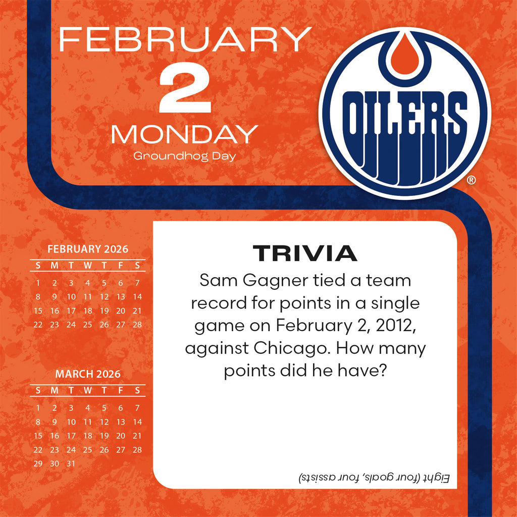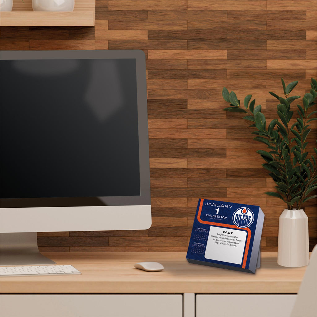 Le calendrier quotidien des Oilers 2026 de Turner Boxed Daily Calendars vous propose 365 jours d'anecdotes passionnantes sur le hockey, des quiz sur les Oilers d'Edmonton et des défis amusants qui raviront tous les fans. Idéal pour suivre la saison de la LNH et les dates importantes, ce calendrier de collection inclut également les jours fériés canadiens et le cycle lunaire pour plus de commodité. Conçu dans une optique de développement durable, ce calendrier quotidien des Oilers d'Edmonton est sans plastique, entièrement recyclable et imprimé sur du papier certifié FSC issu de sources responsables, avec de l'encre de soja écologique. Son support intégré permet de l'afficher facilement sur un bureau, une table de chevet ou une table – un accessoire idéal pour la maison, le bureau ou le vestiaire. Que vous suiviez le calendrier des Oilers, que vous souhaitiez réviser l'histoire de l'équipe ou simplement découvrir une nouvelle anecdote sur le hockey chaque jour, ce calendrier de quiz sur les Oilers est un cadeau attentionné pour les fans passionnés.