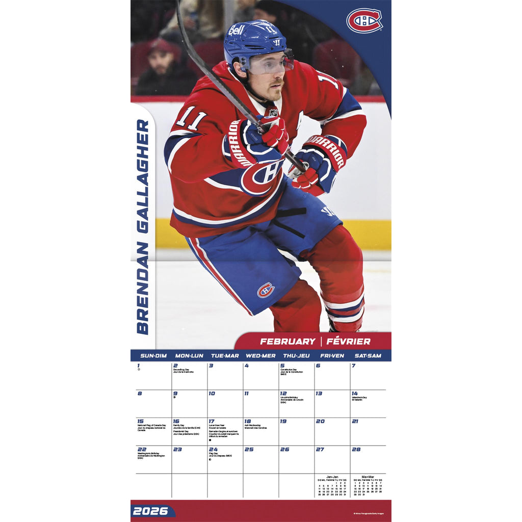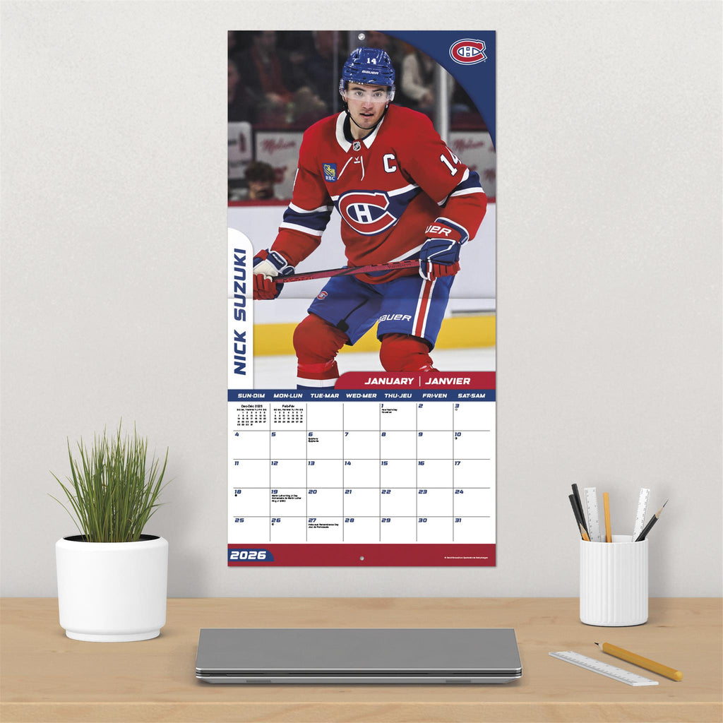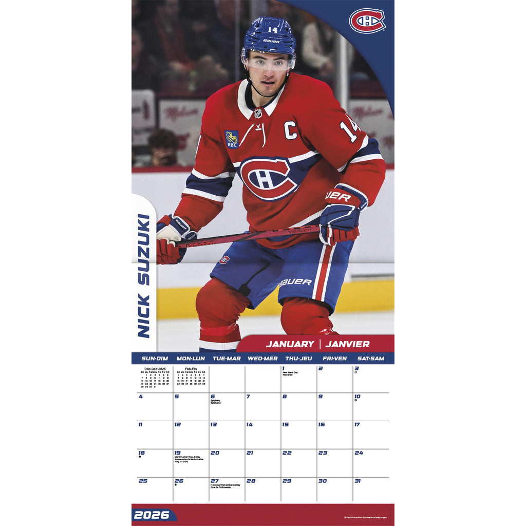 Les Canadiens de Montréal sont à l'honneur dans le calendrier 2026, avec des photos des plus beaux moments de la saison, à domicile et à l'extérieur de la ligue. Si vous êtes un partisan de la plus ancienne équipe de la LNH encore en activité, vous pouvez suivre la progression des Canadiens vers leur prochain championnat ici. Le tir, et le but! Ce calendrier mural de seize mois comprend des pages mensuelles de janvier à décembre 2026, ainsi qu'une page regroupant les quatre derniers mois de 2025. Chaque page mensuelle inclut les jours fériés fédéraux et les phases de la lune, avec suffisamment d'espace pour noter vos tâches et rendez-vous et ainsi vous aider à rester organisé. Il présente 13 images de haute qualité imprimées sur du papier de qualité supérieure certifié par le Forest Stewardship Council. Idéal pour décorer votre mur, un tableau de liège ou un tableau d'affichage à la maison, à l'école ou au bureau.