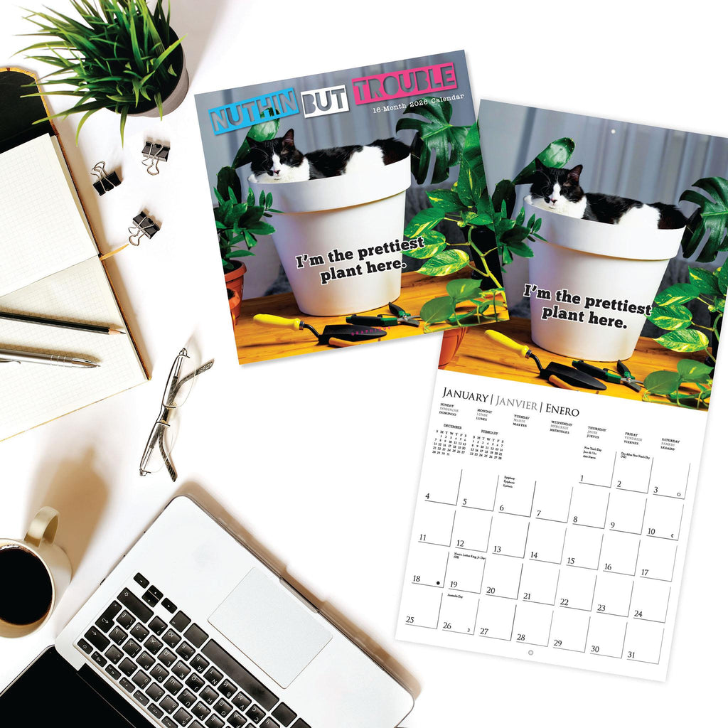 Capturant les comportements audacieux des chats dans leurs moments les plus aventureux, « Nuthin' But Trouble » nous offre un aperçu unique de leurs pitreries félines. Avec toute la « catitude » qu'un museau retroussé peut exprimer, ces images hilarantes nous dévoilent leurs « pensées » lors de leurs moments d'insouciance quotidienne. Nos intrépides compagnons donnent le ton pour toute une année de frasques à quatre pattes !