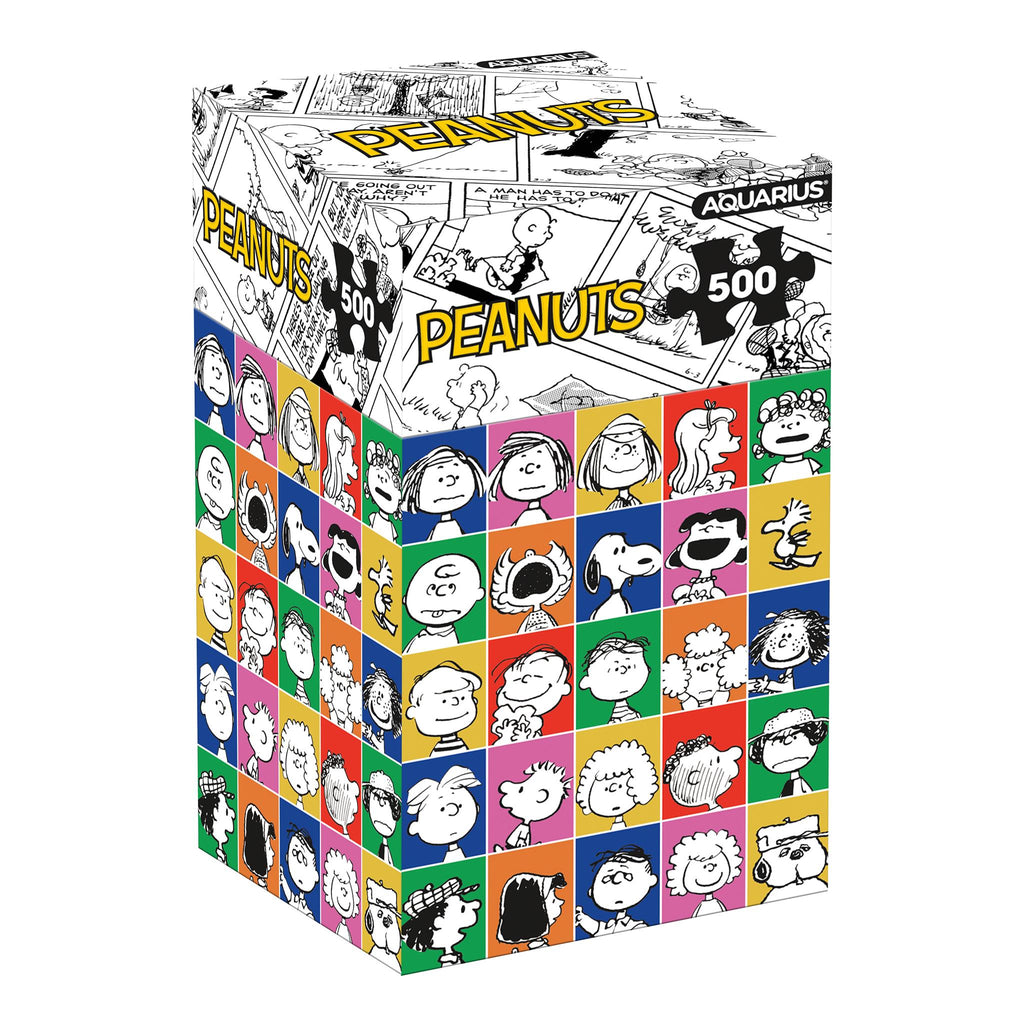 Le puzzle de 500 pièces Peanuts, commémorant le 75e anniversaire de la bande dessinée, met en scène les personnages originaux. Une fois assemblé, il mesure 35,5 x 48 cm.