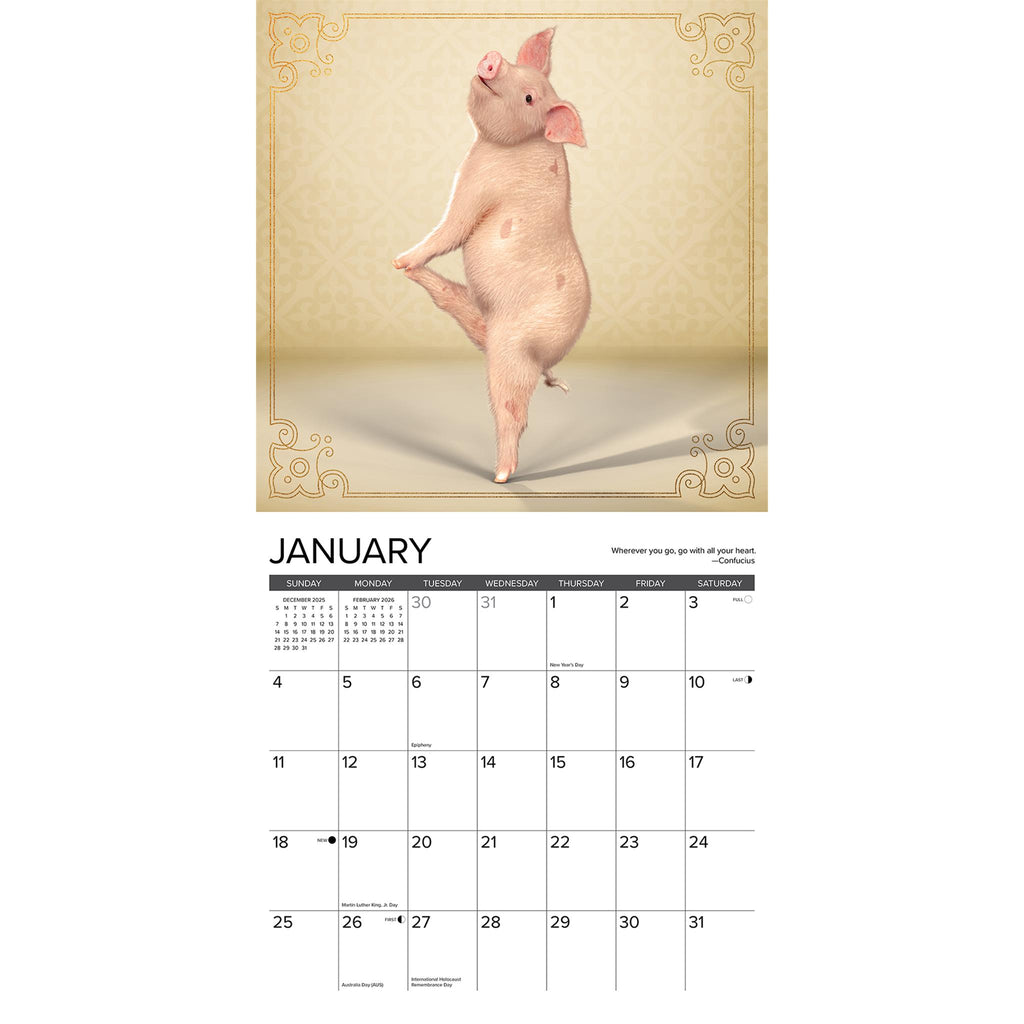 Envie d'une silhouette longiligne ? Ces petits cochons sont en pleine forme pour un entraînement abdominal de haut niveau – adieu les rondeurs ! Ils travaillent leur posture et leur souplesse pour être prêts à afficher des fesses de rêve en un rien de temps ! Organisez-vous pour l'année à venir avec le calendrier mural 2026 de Willow Creek Press (30,5 x 30,5 cm). Ce calendrier dispose de grandes cases pour noter facilement les dates et les événements, vous aidant ainsi à rester efficace et à respecter vos engagements. Laissez ce calendrier vous guider vers une année plus organisée, réussie et épanouissante. CADEAU IDÉAL – Ne cherchez plus le cadeau parfait pour toute occasion spéciale. Rendez l'année de quelqu'un inoubliable avec l'un de nos calendriers muraux 2026. Nos calendriers sont le choix idéal pour vos amis et votre famille, même pour ceux qui sont difficiles à satisfaire. PLANIFICATION – Restez organisé et inspiré tout au long de l'année. Ce calendrier est idéal pour prendre des notes, noter les dates importantes, suivre vos rendez-vous et faciliter l'organisation des activités familiales. DES IMAGES EXCEPTIONNELLES - Des images nettes et détaillées en couleur chaque mois, pour décorer vos murs à la maison, au bureau ou à l'école. GRANDES CASES - Format 30,5 x 30,5 cm, avec de grandes cases journalières offrant un espace d'écriture généreux. QUALITÉ SUPÉRIEURE - Papier de haute qualité qui reste bien à plat une fois accroché et offre des couleurs vives et éclatantes. VUE D'ENSEMBLE MENSUEL - Planifiez vos mois à venir ou consultez les mois précédents en un coup d'œil grâce aux grilles. ÉCO-RESPONSABLE - Willow Creek Press s'engage pour l'environnement et la durabilité de ses produits. Nos calendriers muraux 2026 (30,5 x 30,5 cm) sont imprimés avec des encres à base de soja sur du papier certifié FSC de haute qualité pour une écriture fluide. PÉRIODE - Calendrier mural 2026 avec 6 mois bonus de juillet à décembre 2025. FONCTIONNALITÉS SUPPLÉMENTAIRES - Jours fériés américains et internationaux et phases de la lune (heure centrale) indiqués pour chaque mois. Faites de cette année votre plus belle année grâce à ce magnifique calendrier mural. Apprenez à devenir une personne très efficace, un mois à la fois !