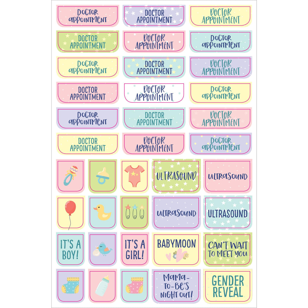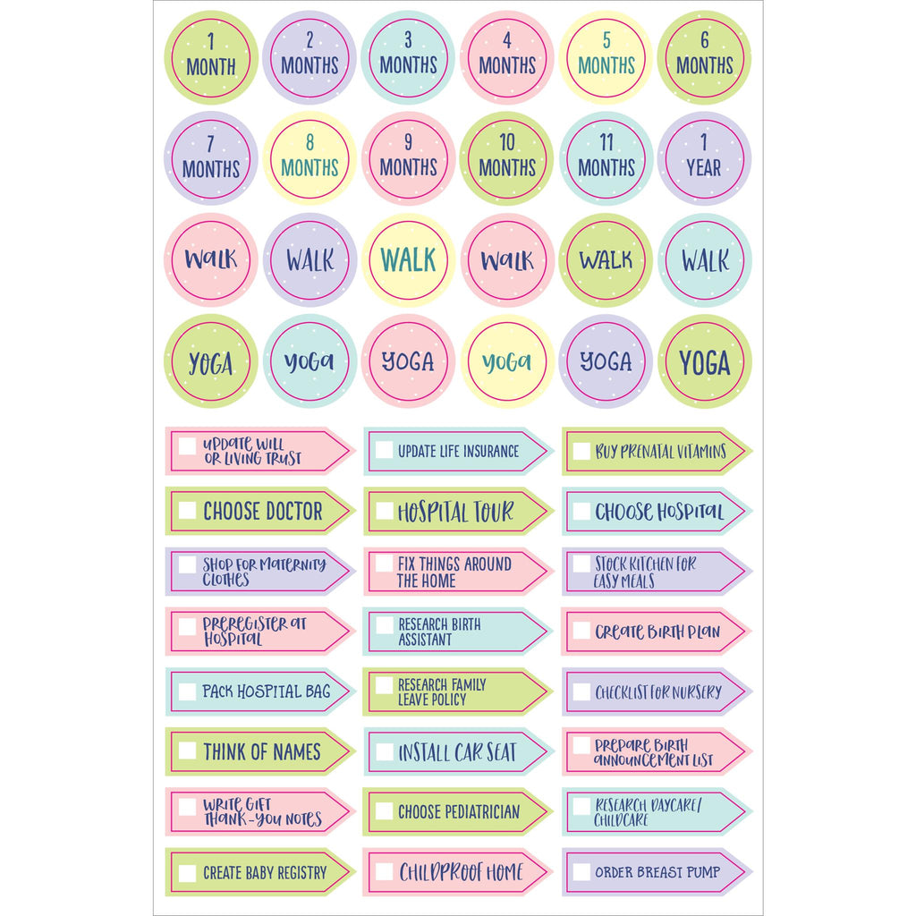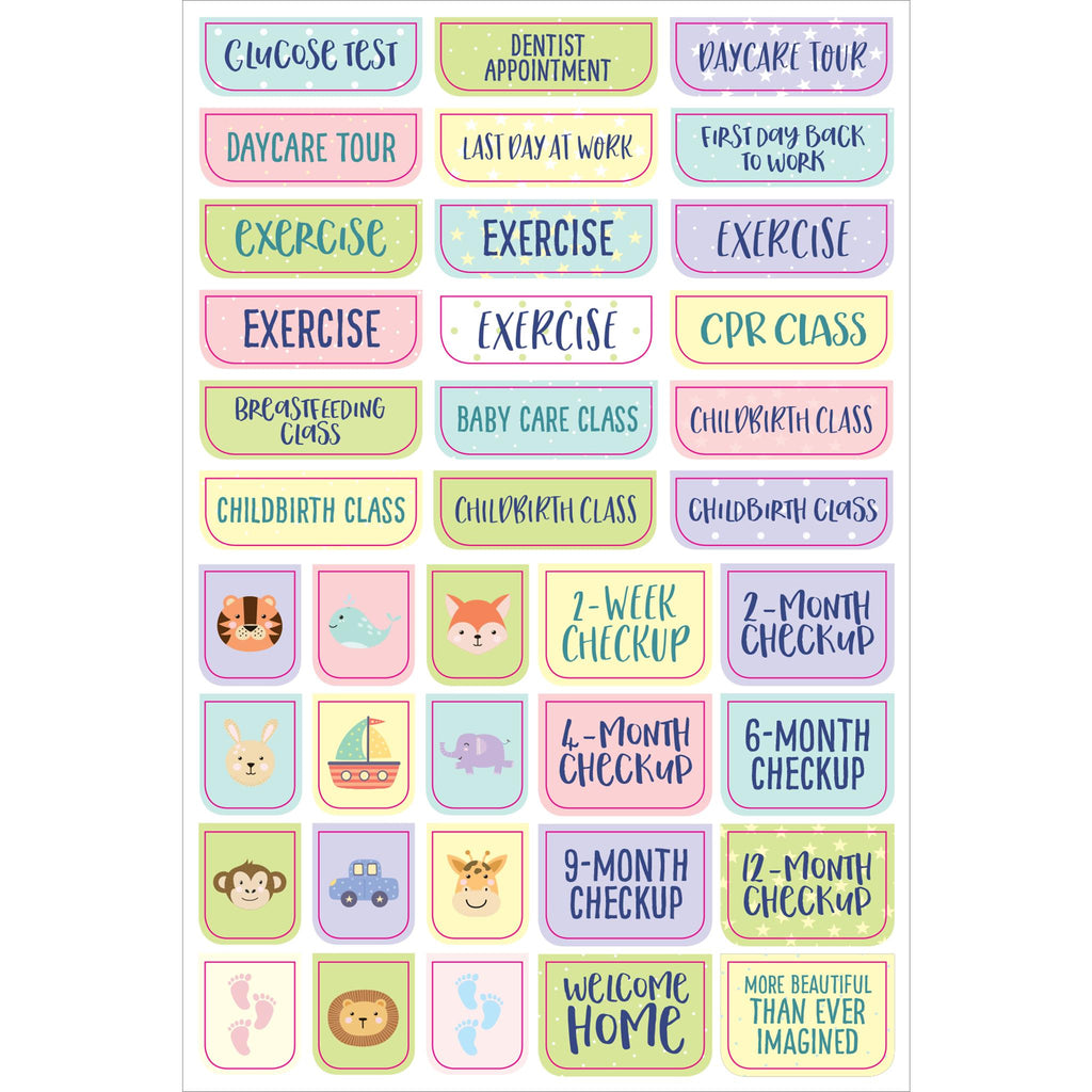 Voici plus de 300 autocollants inspirants et pratiques pour vous accompagner tout au long de votre grossesse et de la première année de bébé ! Douze planches regorgent d'autocollants mignons et colorés ! Vous trouverez des autocollants spécialement conçus pour la future maman : « Tu vas y arriver ! », « Envie du moment », « Promenade », « Yoga », etc., ainsi que des autocollants pratiques comme « Acheter des vitamines prénatales », « Choisir une maternité » et « Sécuriser la maison ». Vous trouverez également des autocollants pour immortaliser les étapes importantes comme « J'ai entendu le cœur de bébé battre », « Premier coup de pied », « Premier bain » et « Premier rire ». Sans oublier d'adorables autocollants avec des animaux, des empreintes de pas, des canards, des hochets, des fleurs, des étoiles et bien d'autres. Des bordures, des flèches et d'autres motifs vous permettent de personnaliser votre agenda ou votre journal. Palette pastel : rose, bleu, vert, violet et jaune. Ce lot d'autocollants se glisse facilement dans les pochettes arrière des calendriers et carnets Peter Pauper Press. Dimensions de l'emballage : 10 cm de large x 19 cm de haut.
