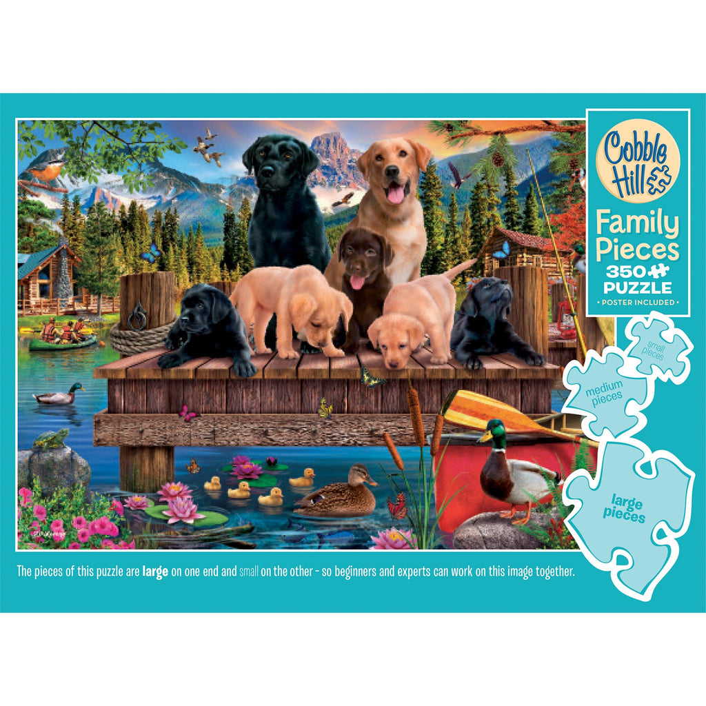 C'est une véritable fête de chiots sur le quai ! Curieux comme ils sont, ils ne détachent pas leurs yeux des canetons. Voici un puzzle Family Pieces. D'un côté, les pièces sont petites – idéal pour les adultes – et de l'autre, elles sont grandes – parfait pour les enfants. Ainsi, les amateurs de puzzles de tous âges et de tous niveaux peuvent jouer ensemble. Les puzzles Cobble Hill proposent des pièces aux formes aléatoires originales : aucune n'est identique. Un poster pratique est inclus.