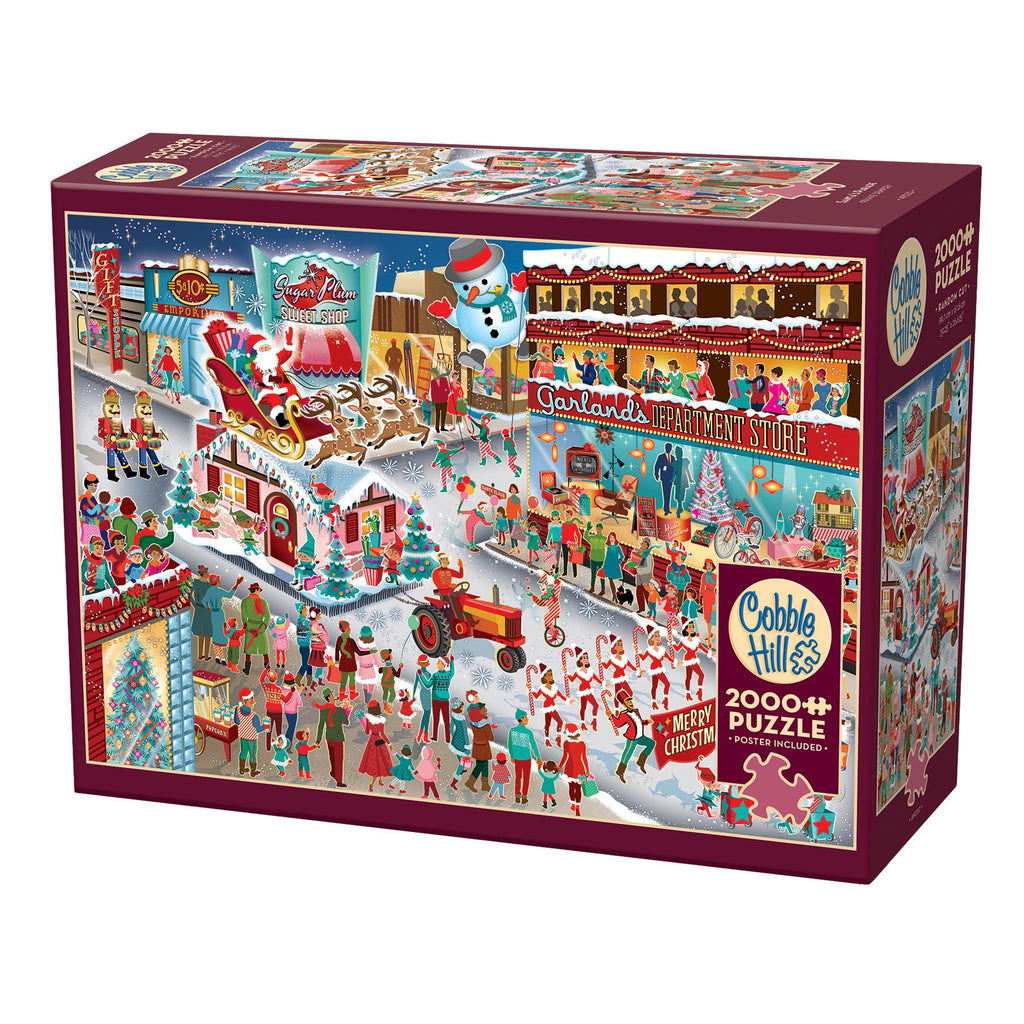 Diane Dempsey nous offre une nouvelle scène hivernale enchanteresse, empreinte de nostalgie pour le style de vie moderne du milieu du XXe siècle. L'esprit de Noël est palpable : les fanfares défilent dans la rue, traînant la maison du Père Noël. Ce puzzle stimulant de 2 000 pièces est idéal pour les fêtes. Les puzzles Cobble Hill se distinguent par leurs pièces aux formes aléatoires et originales, rendant chaque puzzle unique. Un poster pratique est inclus.