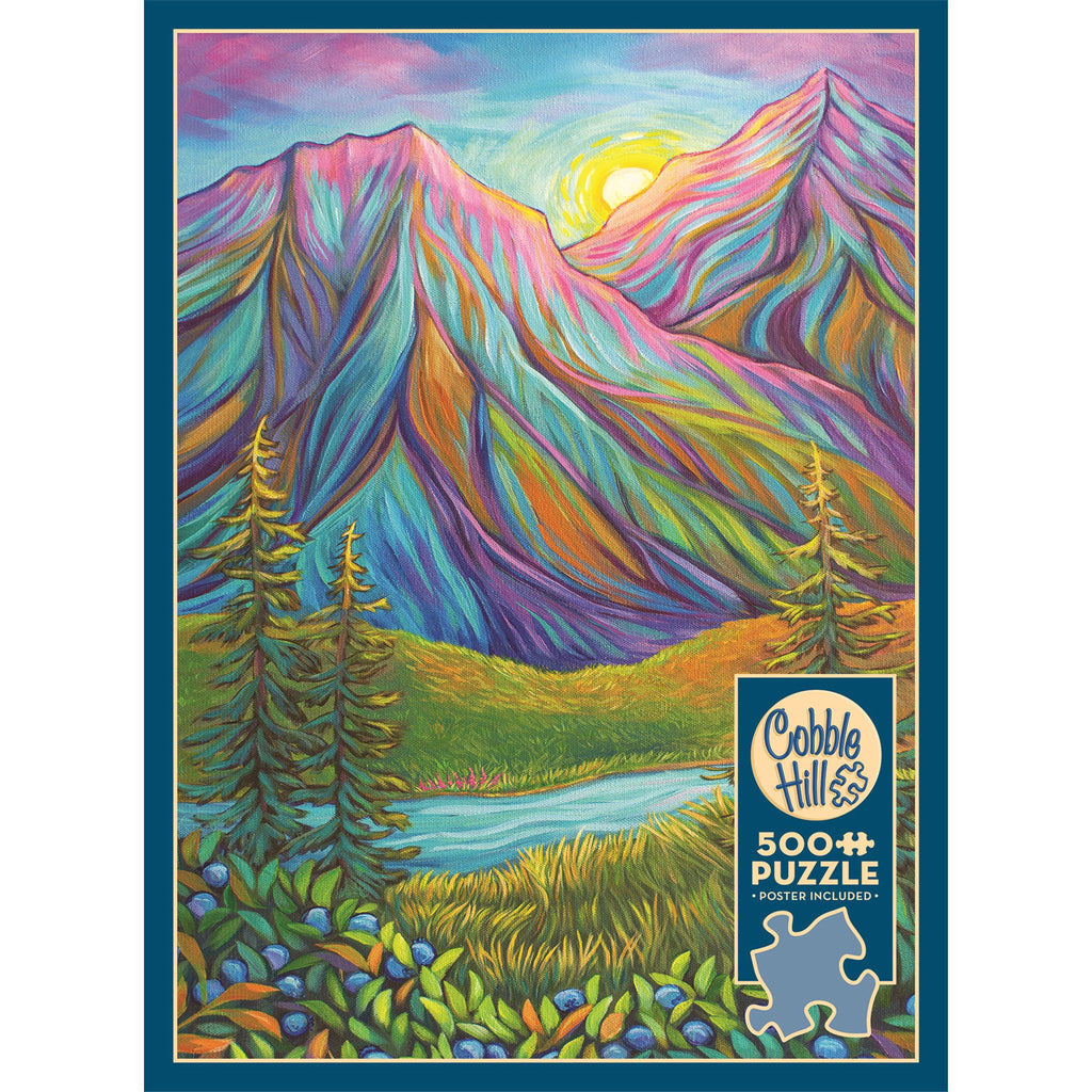 Ce puzzle de 500 pièces est idéal pour les amoureux de la nature. Amanda Rose Warren immortalise la faune et la flore du Nord dans des couleurs éclatantes et une touche de fantaisie. Montagnes aux teintes arc-en-ciel, champs verdoyants et feuillages bleus et orangés : « Solstice secret » vous invite à la contemplation de paysages paisibles. Les puzzles Cobble Hill se composent de pièces aux formes aléatoires originales, ce qui les rend toutes uniques. Un poster pratique est inclus.