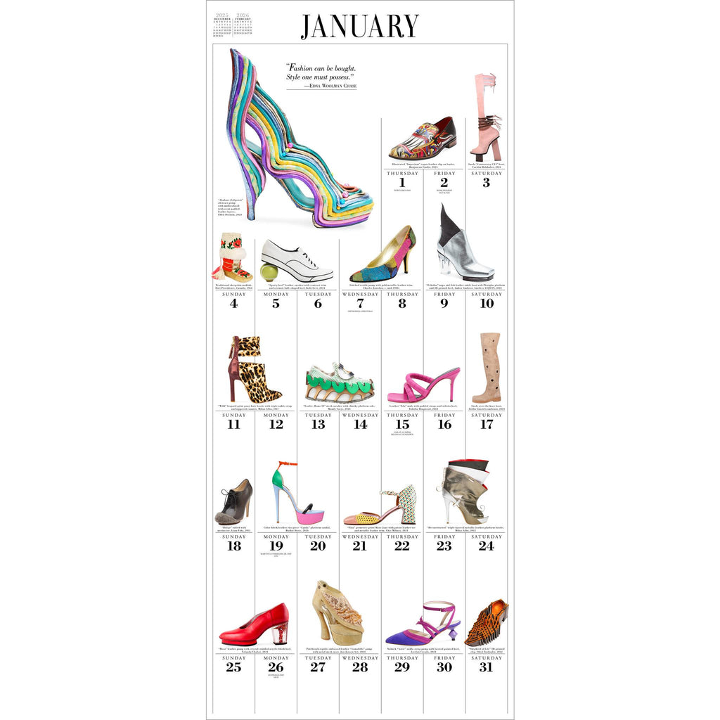 Une année de haute couture pour les passionnés de chaussures : chaque mois de ce calendrier mural « Une photo par jour » présente des chaussures classiques, des modèles historiques et de superbes nouveautés des créateurs les plus en vogue, avec plus de 20 photos dans chaque case.