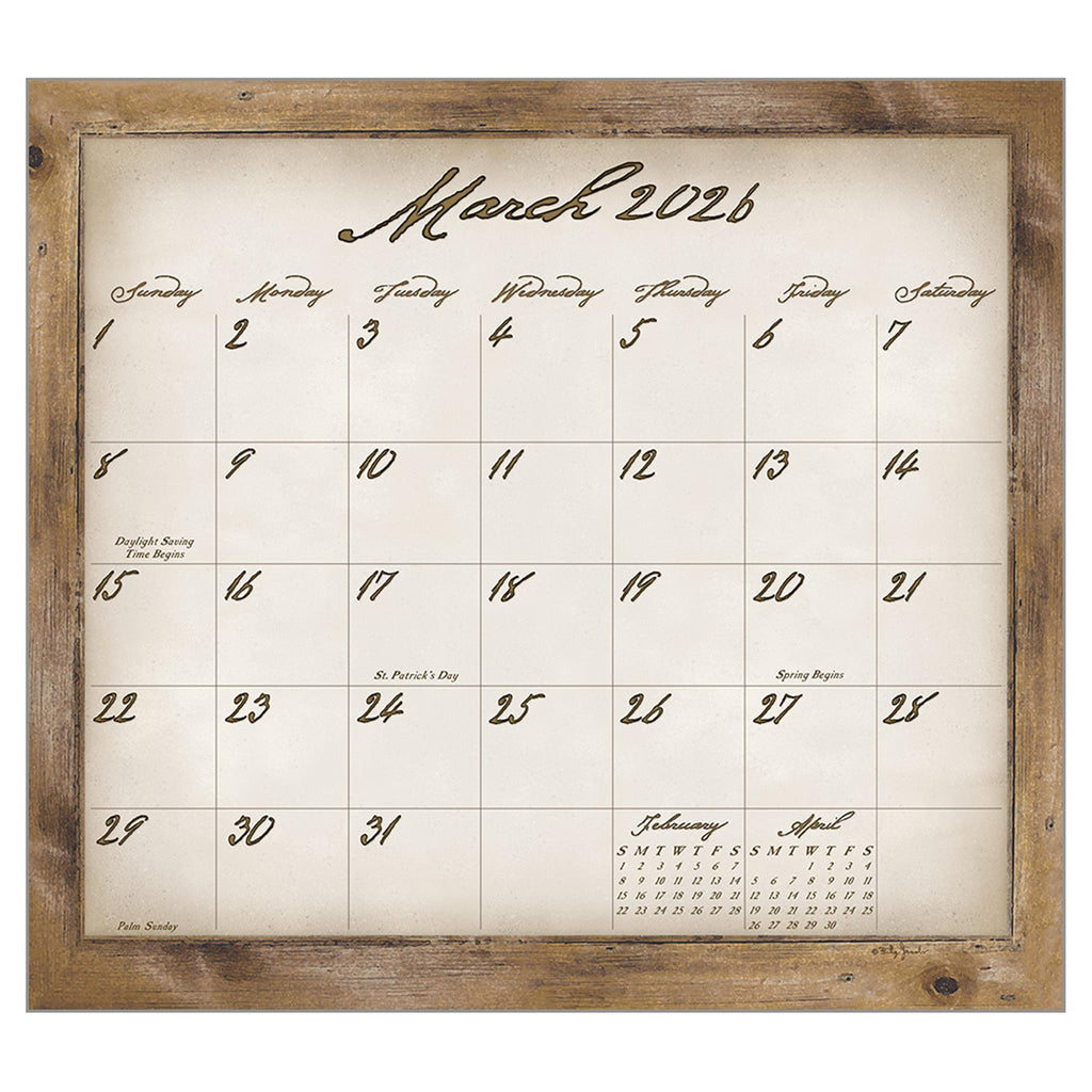 Ce calendrier mural Legacy 2026 présente les magnifiques natures mortes réalistes de l'artiste country Billy Jacobs. Chaque calendrier de 12 mois est imprimé sur un papier haut de gamme gaufré lin, offrant un toucher luxueux et unique, et est livré dans une pochette de protection. Le bloc-dates est conçu spécifiquement pour chaque calendrier afin de s'harmoniser avec les illustrations. La dernière page contient un calendrier bisannuel (2026/2027) et un espace pour les notes. Un renfort en laiton sur la couverture assure une meilleure durabilité.