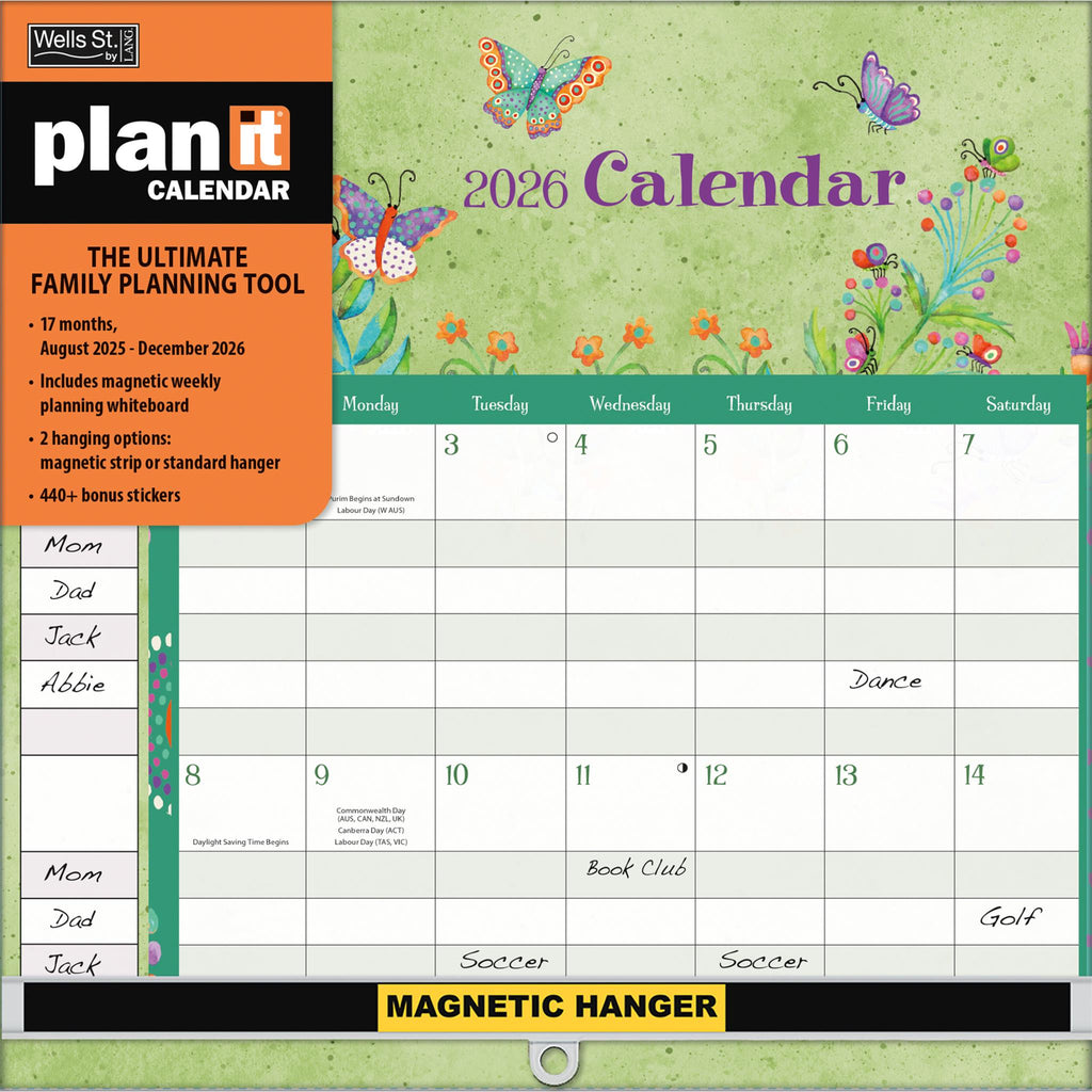 Le calendrier Simply Grateful 2026 Plan-It Plus vous permettra d'organiser votre famille grâce à sa grille de 17 mois comprenant 5 lignes individuelles pour chaque membre de la famille, 442 autocollants de rappel et un tableau blanc magnétique pour la planification. Chaque mois est agrémenté d'illustrations colorées et inspirantes de Debi Hron.