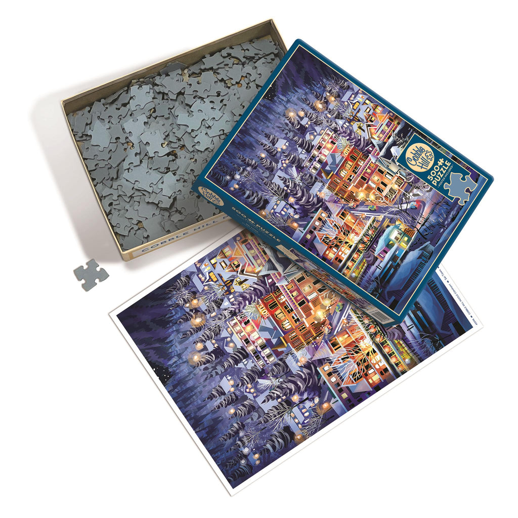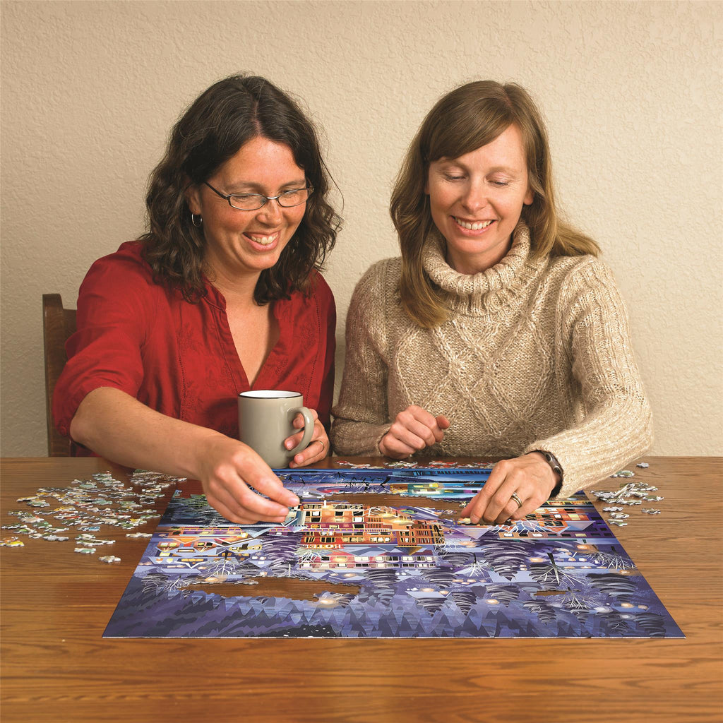 Ce puzzle de 500 pièces, créé par l'artiste canadien Dale Hitchcox, capture à merveille la quiétude d'un village de ski après une longue journée sur les pistes. Les lumières éclatantes qui illuminent le centre du village créent une ambiance chaleureuse et accueillante. Les puzzles Cobble Hill se composent de pièces aux formes aléatoires originales, ce qui les rend toutes uniques. Un poster pratique est inclus.