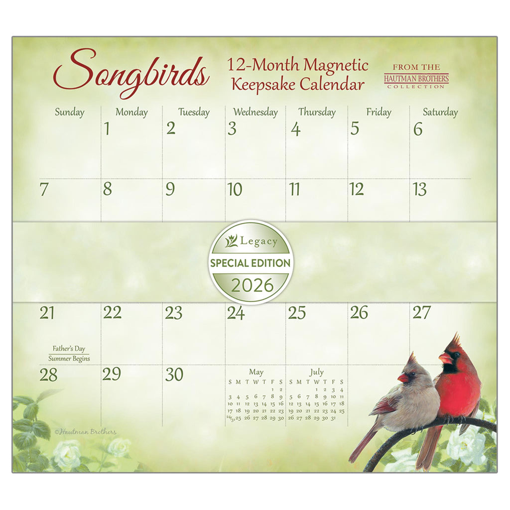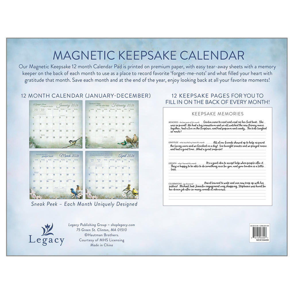 Le bloc-notes magnétique calendrier édition spéciale 2026 de Legacy présente les magnifiques portraits réalistes d'oiseaux réalisés par les célèbres frères Hautman. Chaque bloc-notes de 12 mois est doté d'un calendrier unique, imprimé sur du papier de qualité supérieure et de feuilles détachables. Un espace bonus au verso de chaque mois vous permet de noter vos moments préférés et les choses qui vous ont particulièrement touché durant le mois. Cet organiseur pratique est idéal dans la cuisine grâce à sa bande magnétique au dos, qui permet de le fixer directement sur le réfrigérateur. Il peut également être utilisé sur un classeur ! Les illustrations varient chaque mois au gré des saisons.
