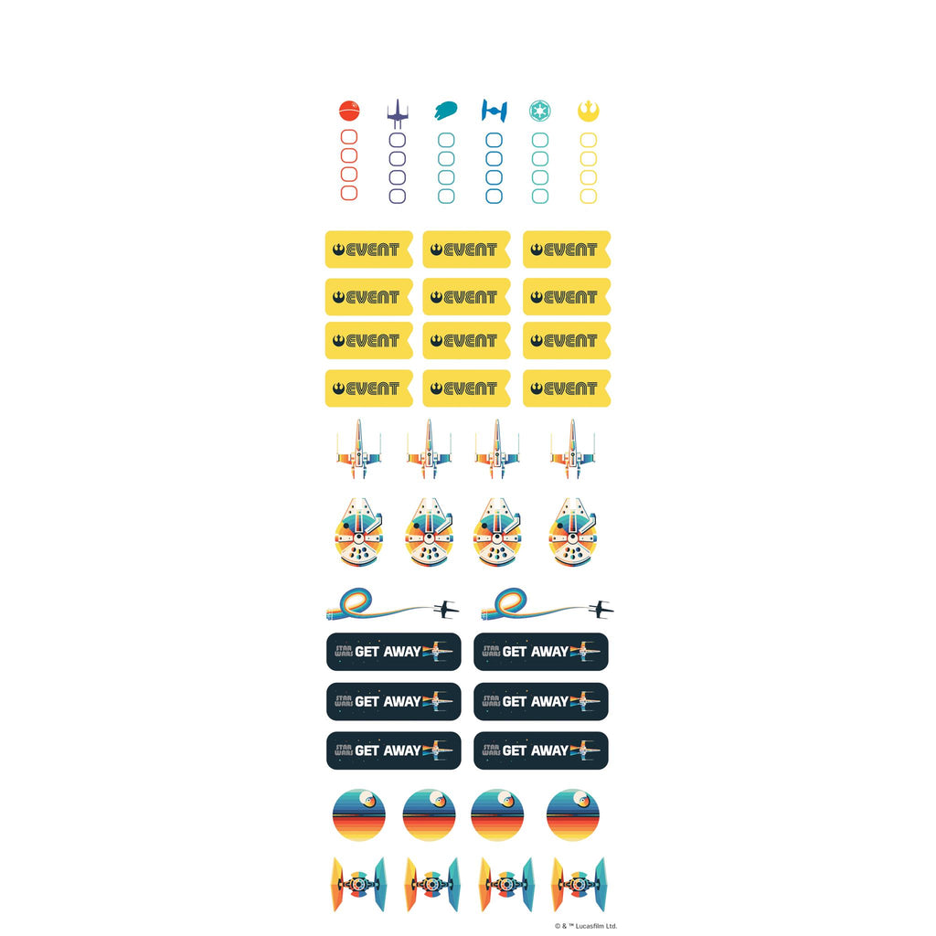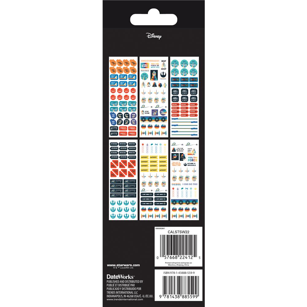 Planifier toute une année peut être un vrai casse-tête… mais ces autocollants calendrier Star Wars colorés sont là pour vous simplifier la vie ! Les autocollants calendrier DateWorks comprennent six planches uniques pour marquer vos jours de congé, réunions, anniversaires, sorties en amoureux, rendez-vous et bien plus encore. Utilisez ces autocollants pense-bêtes sur votre calendrier mural ou agenda 2023-2024 pour une organisation optimale tout au long de l’année.