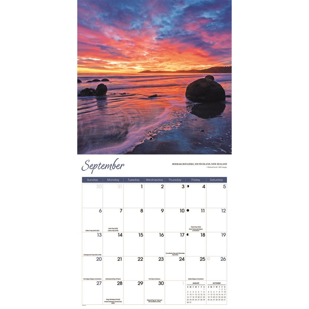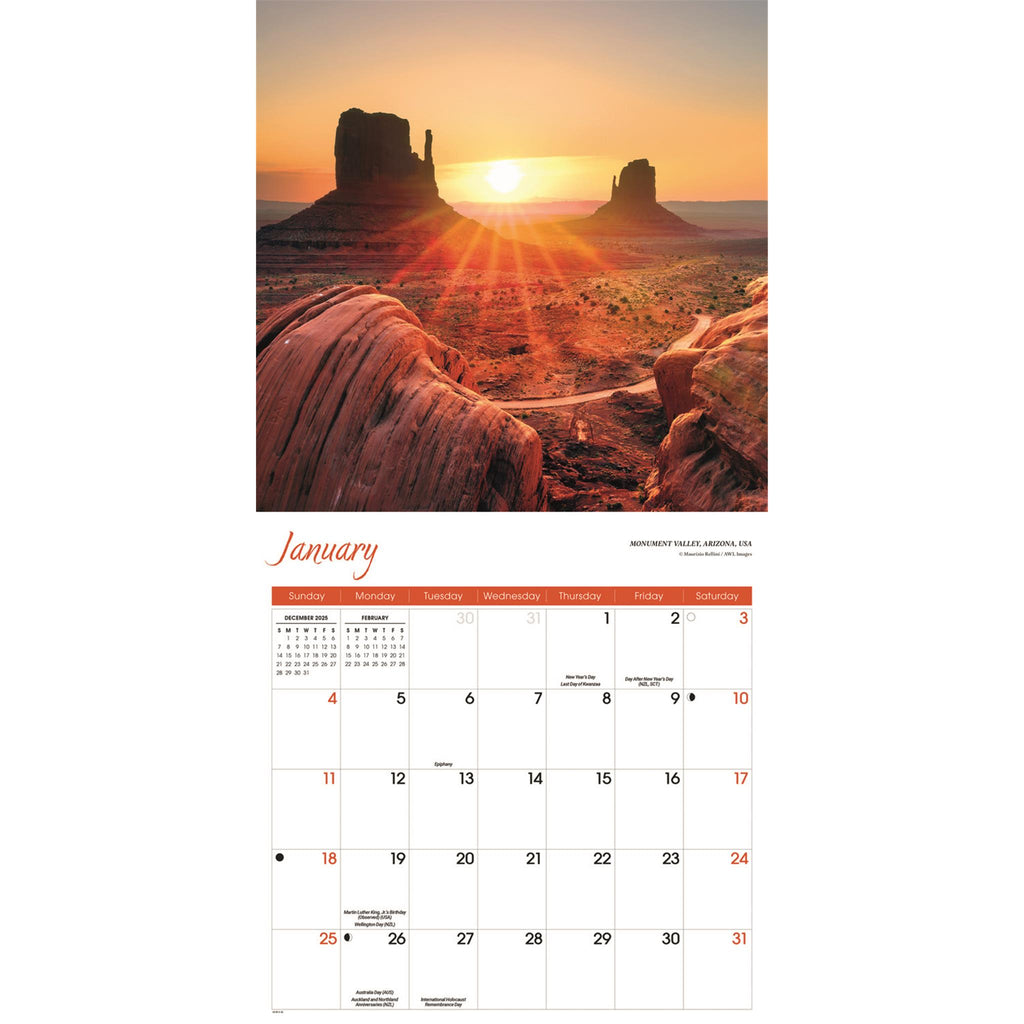 Avec ses images spectaculaires du monde entier, le calendrier mural Lever et Coucher de soleil 2026 illuminera n'importe quel espace ! Il présente des photos à couper le souffle prises dans des lieux exceptionnels, ainsi que suffisamment d'espace pour vos rendez-vous. Ce calendrier est sans emballage plastique.